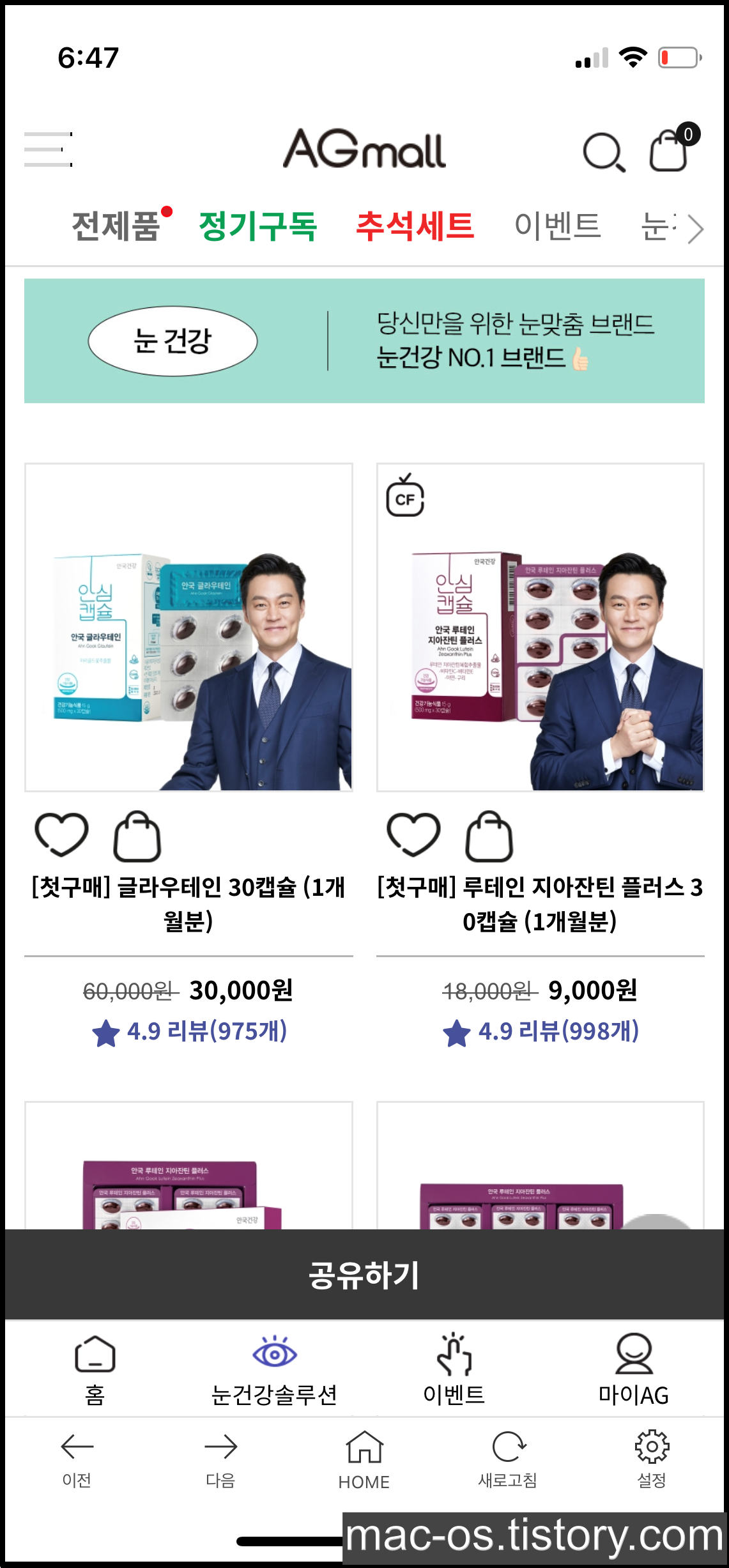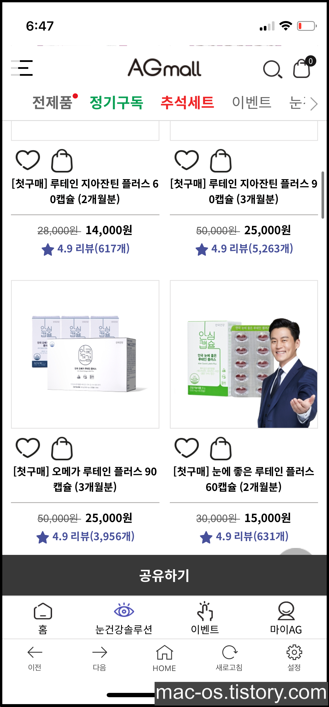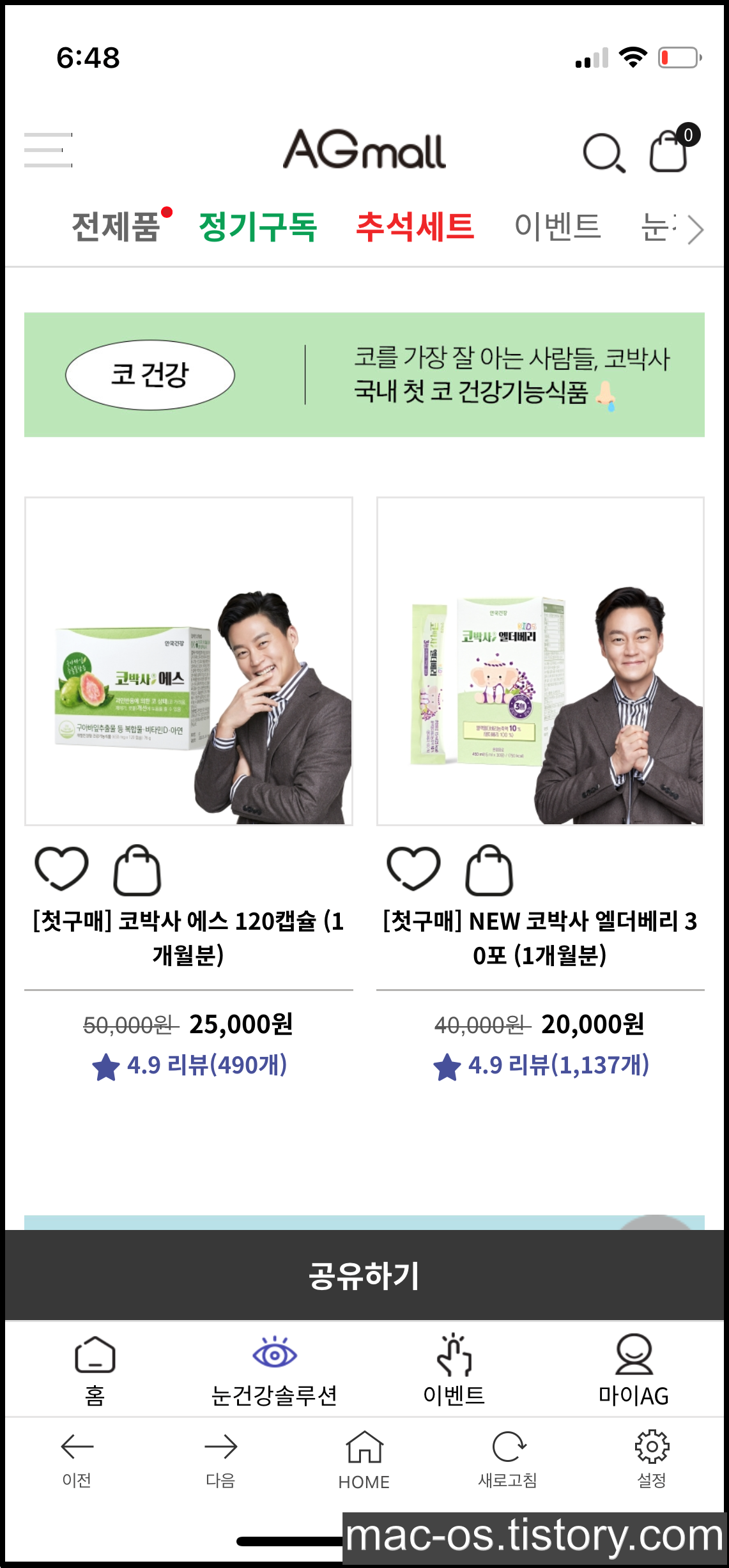 이벤트 페이지에서 스크롤을 내리면 여러 상품이 있는데 눈 건강, 코 건강 등 주제에 맞는 상품을 50% 저렴하게 구매하실 수 있습니다.