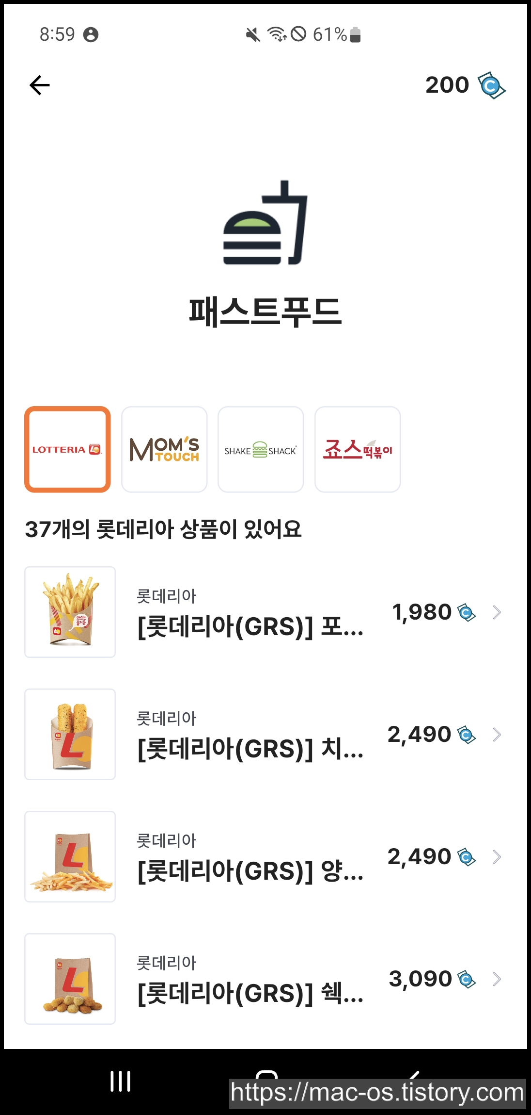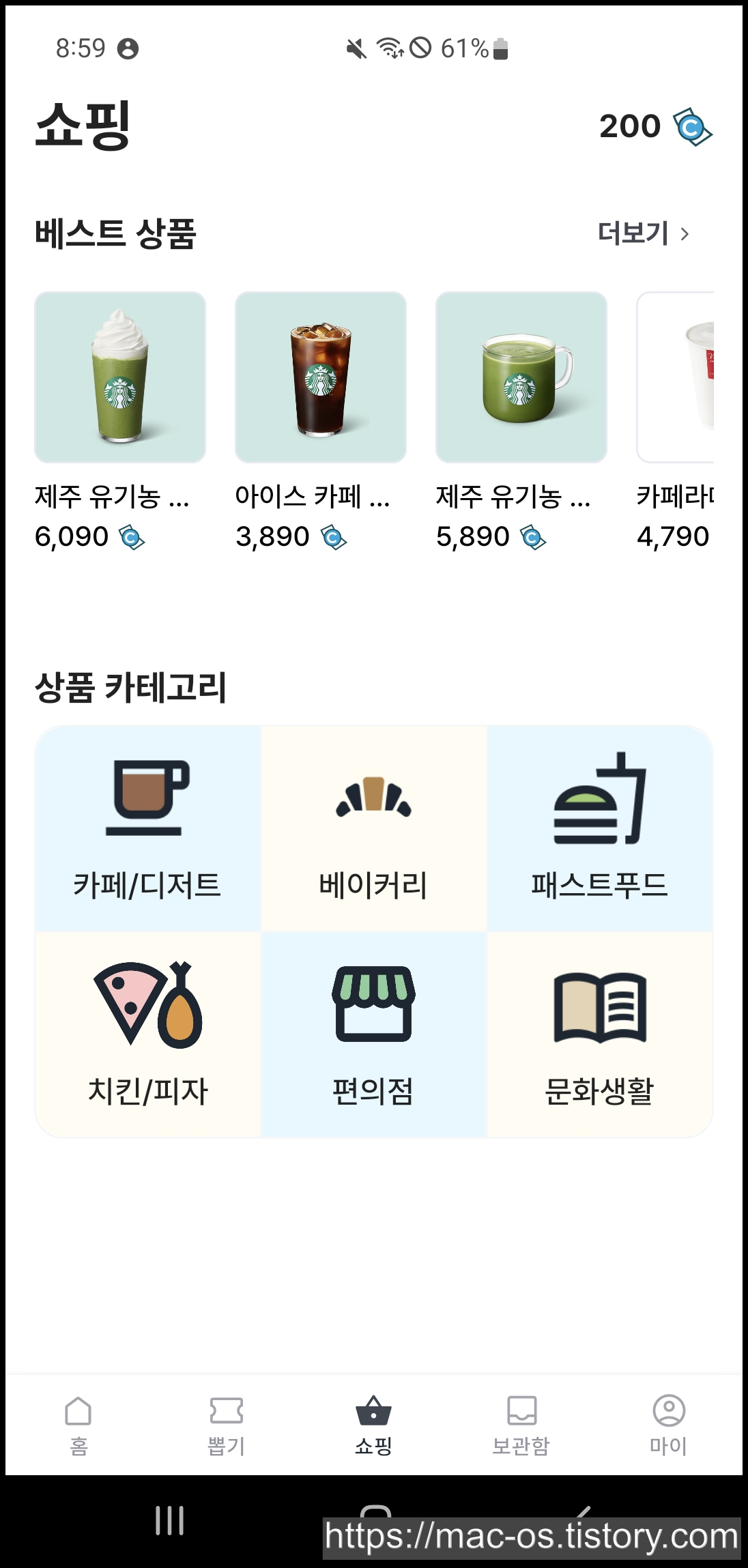 뽑기를 하지 않으실 분들은 [쇼핑]에서 카페/디저트, 베이커리, 패스트푸드, 치킨/피자 기프티콘을 구매하시면 됩니다.