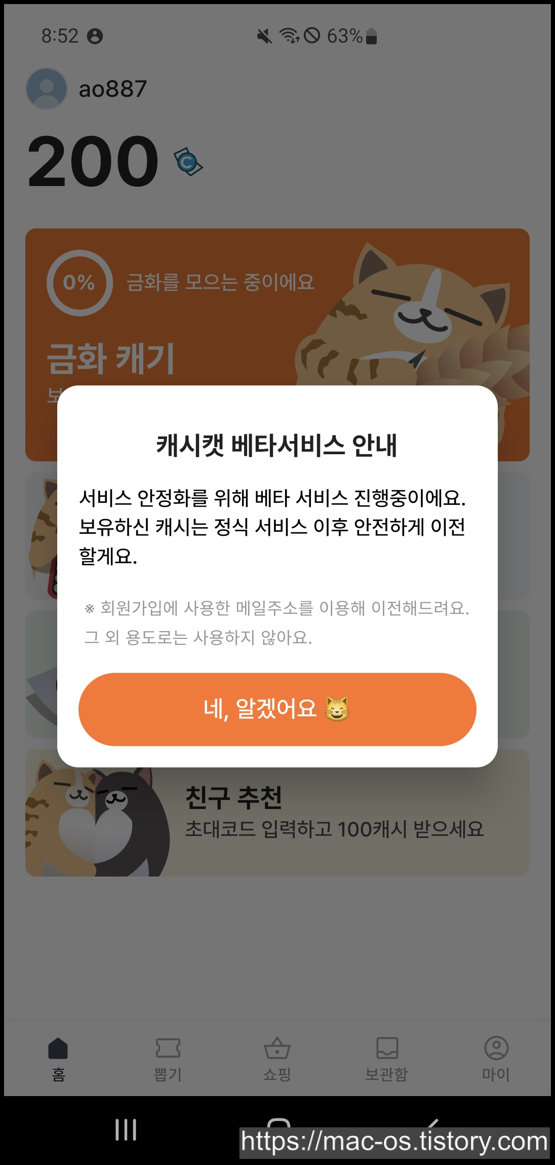 캐시캣 추천인 코드 : A8BNMFWMG (복사가능)
