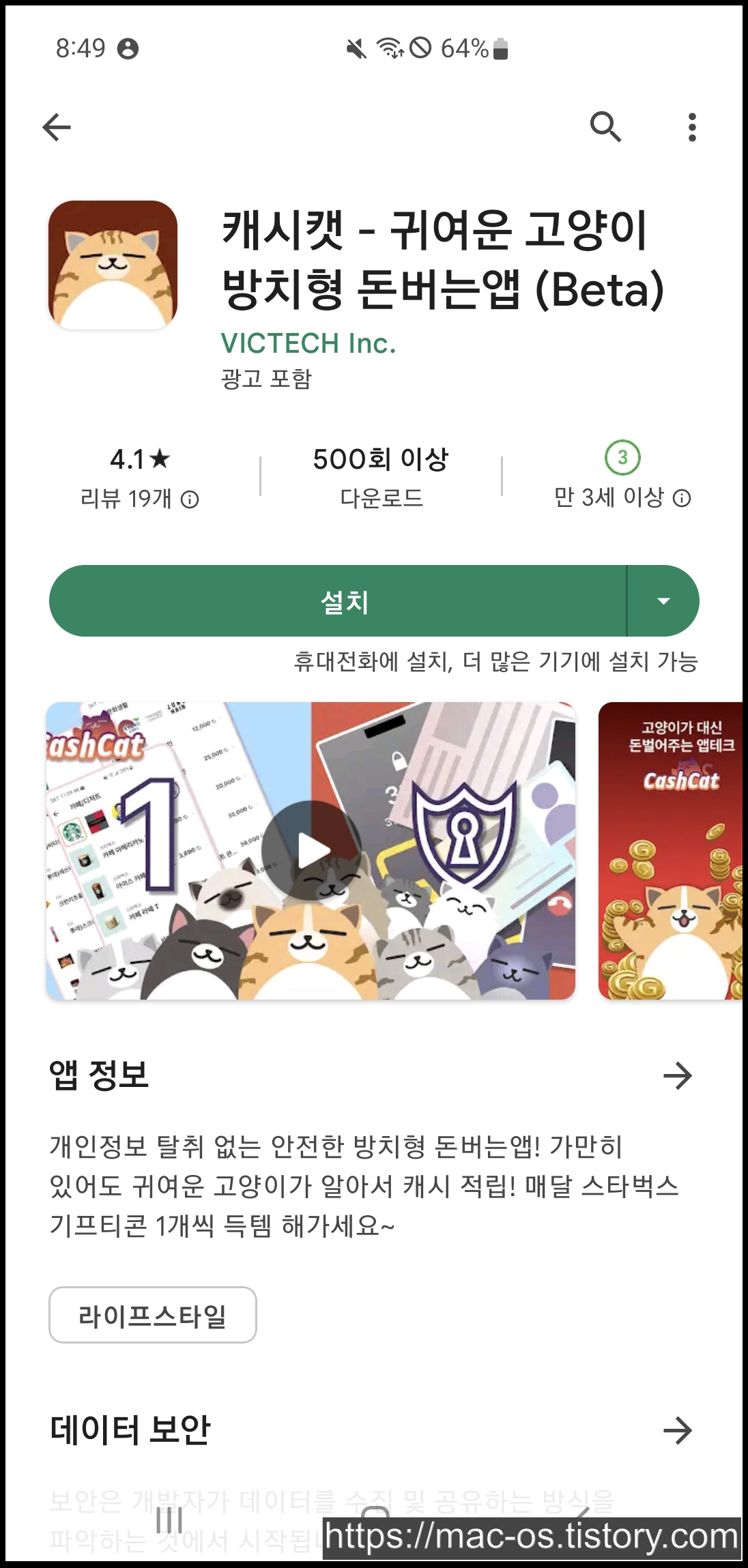 캐시캣은 구글 플레이 스토어에서 설치하실 수 있습니다.
