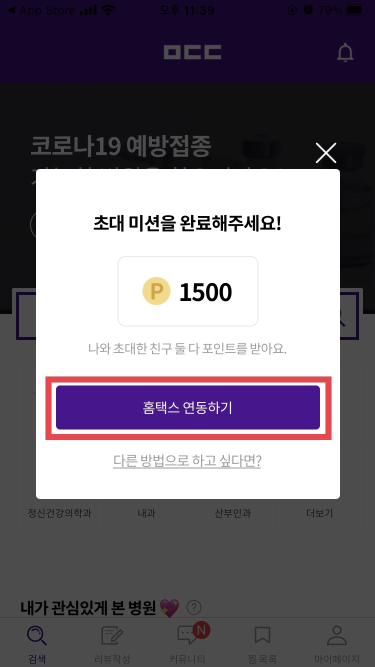 ⬇︎ 모두닥 친구초대 링크, 아래로 들어가셔서 홈택스 연동하시면 24시간 이내에 1,500P가 지급됩니다.