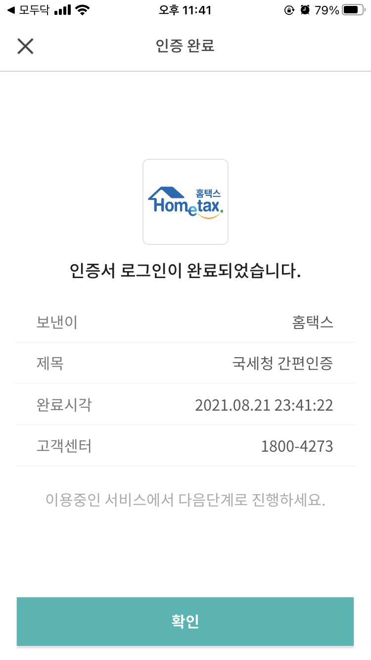 홈택스 연동을 위해선 휴대폰 본인 인증이 필요합니다. 휴대폰 본인 인증 후 아래의 '10초 만에 연동하기'를 터치해주세요.