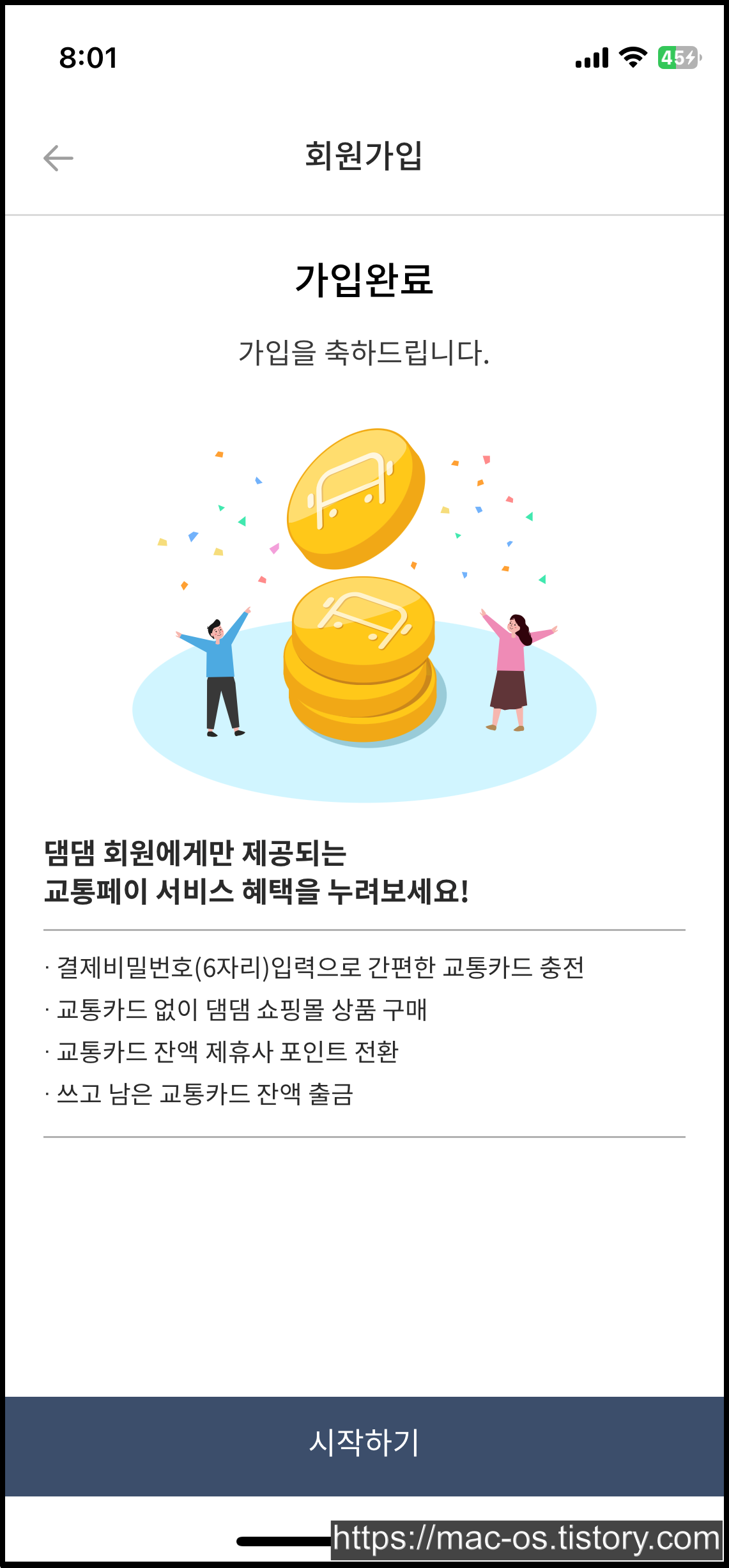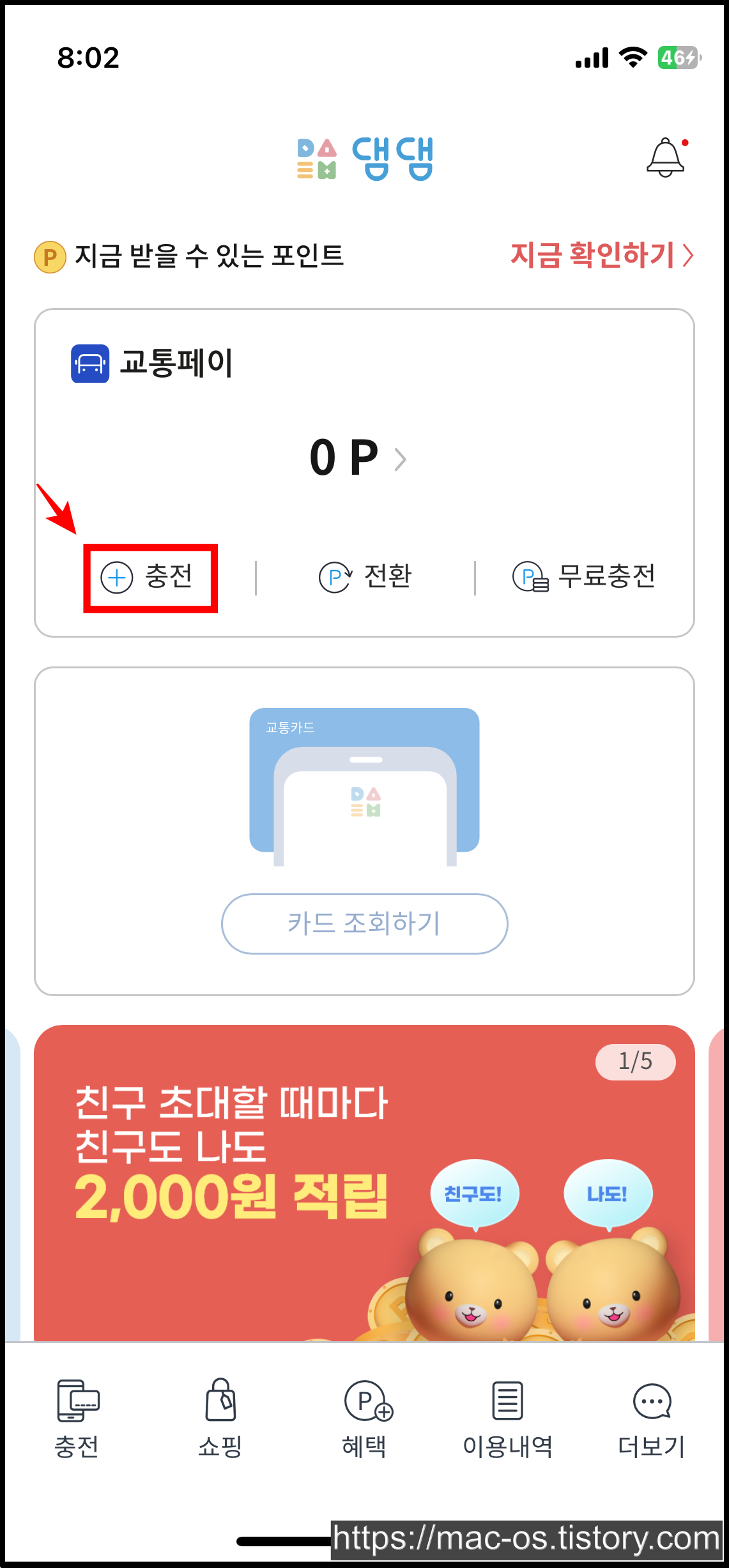 회원가입 페이지에서 추천인 코드를 입력하고 교통페이 1천원 이상 충전하기