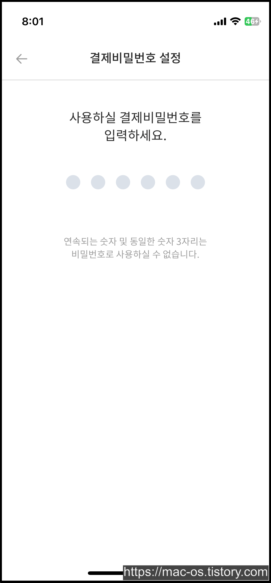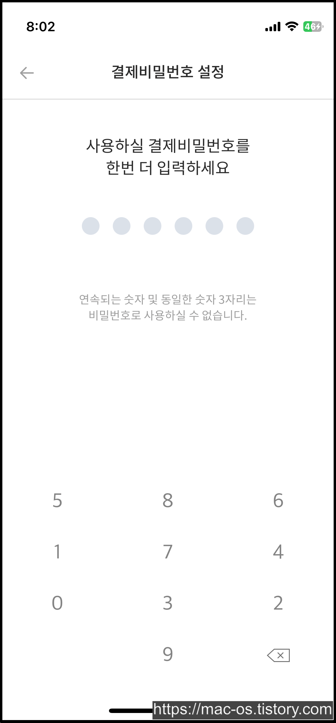 결제비밀번호 6자리를 설정해주세요.