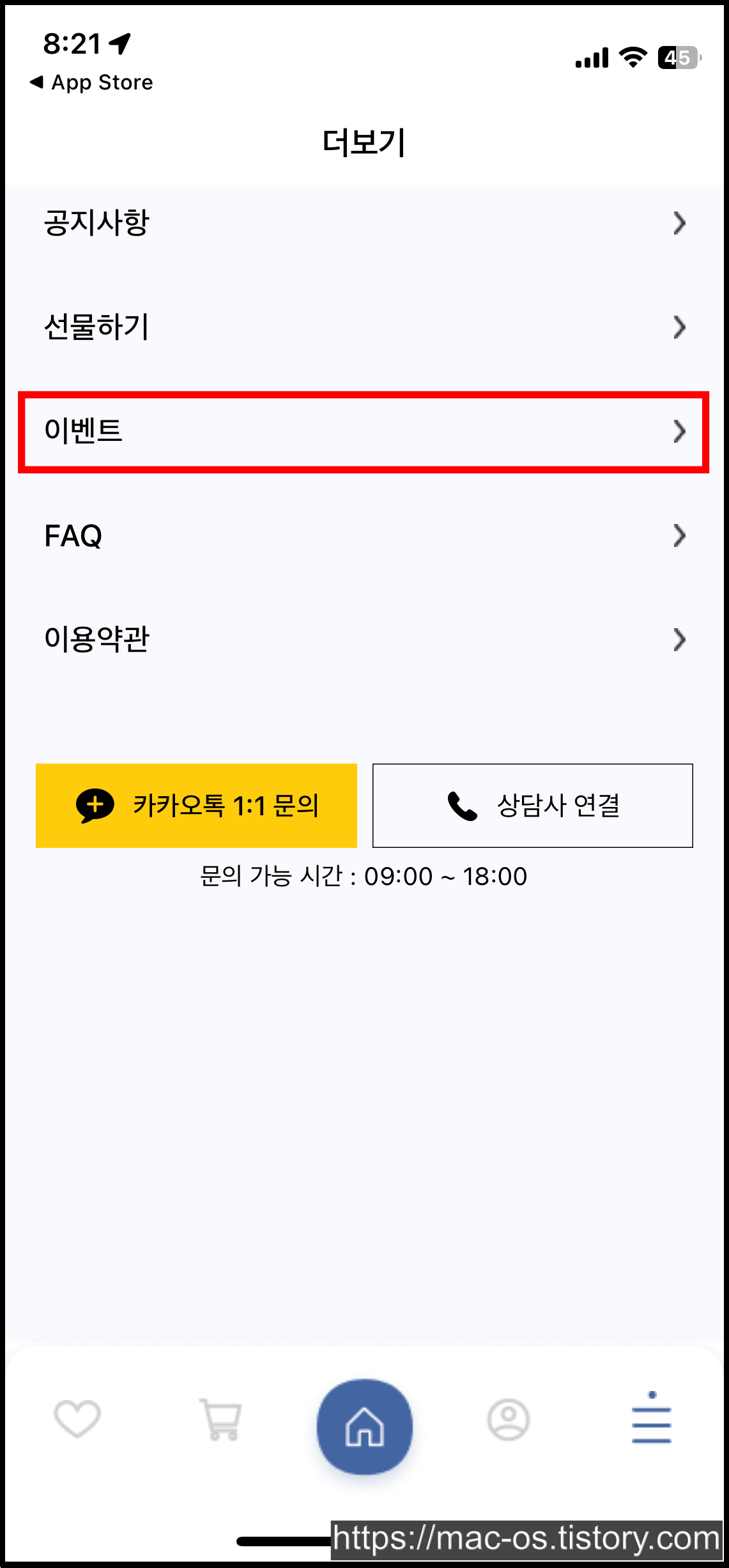 더보기 페이지에서 [이벤트] > [친구초대 이벤트]를 터치한다.