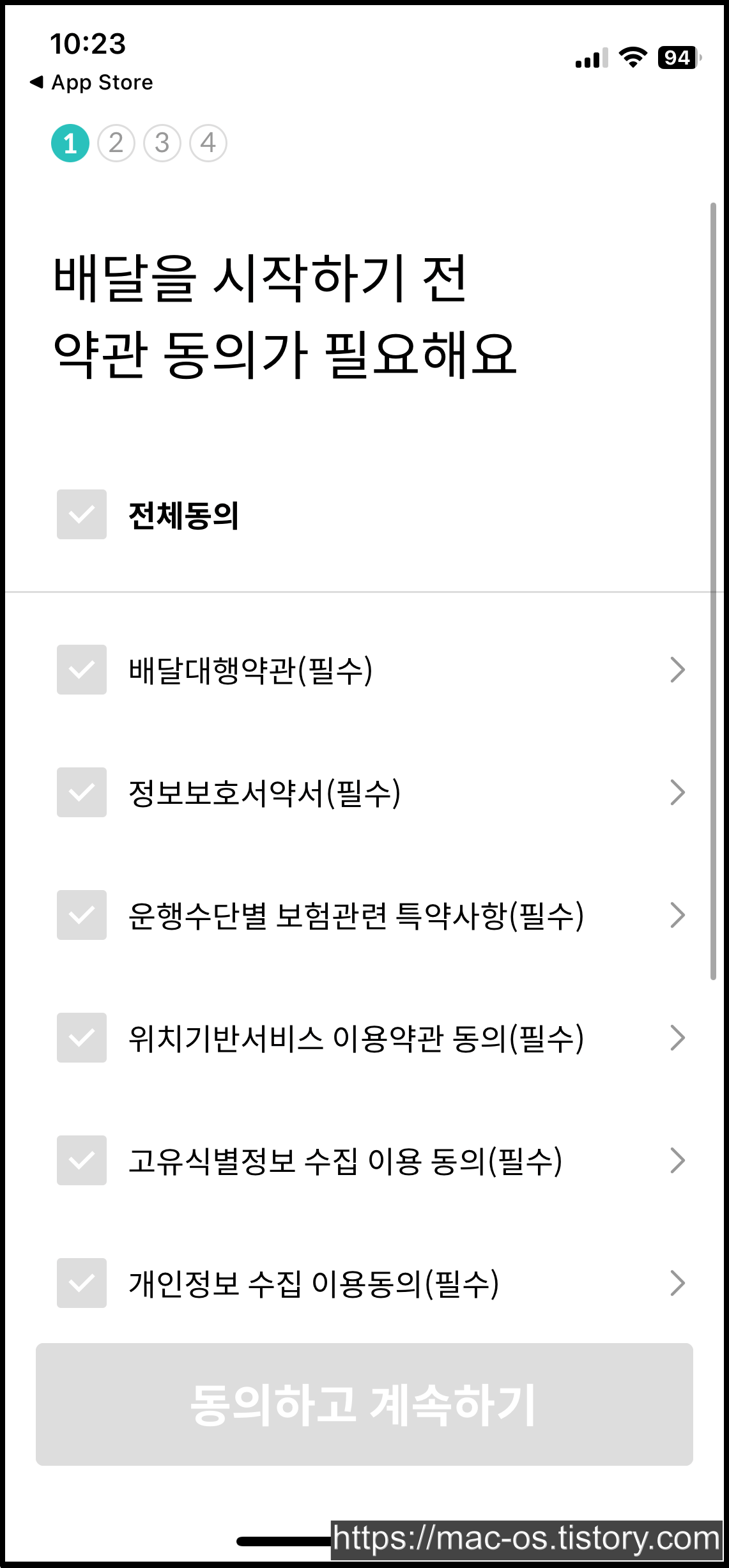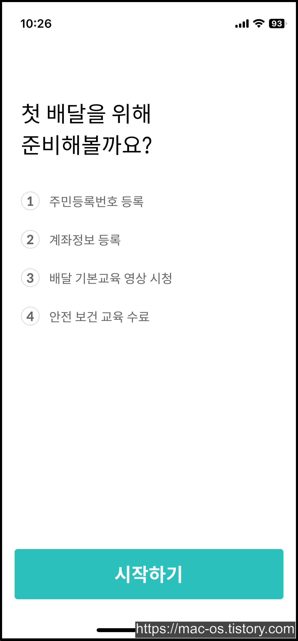 첫 배달을 위해 주민등록번호와 계좌정보, 배달 기본교육 영상 시청, 안전 보건 교육을 수료해야합니다.