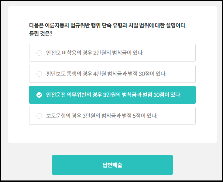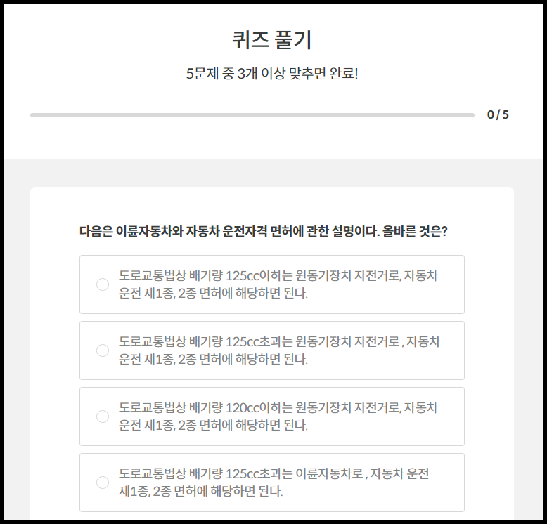 5문제 중에서 3개 이상 맞추면 합격입니다.