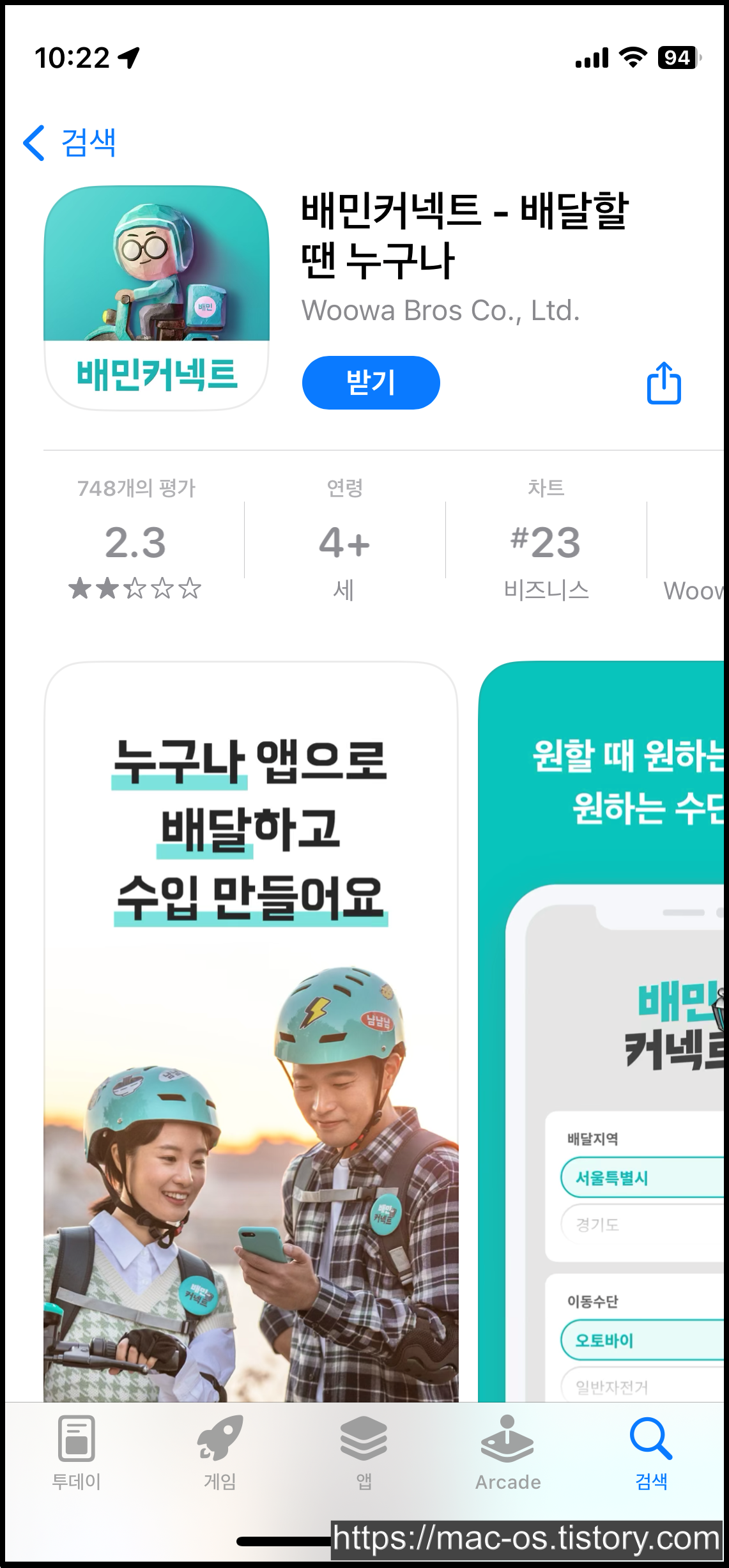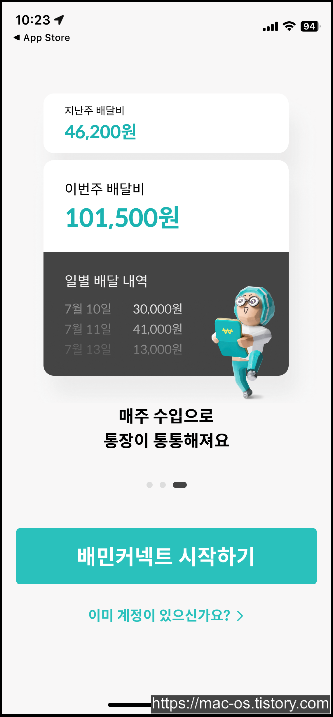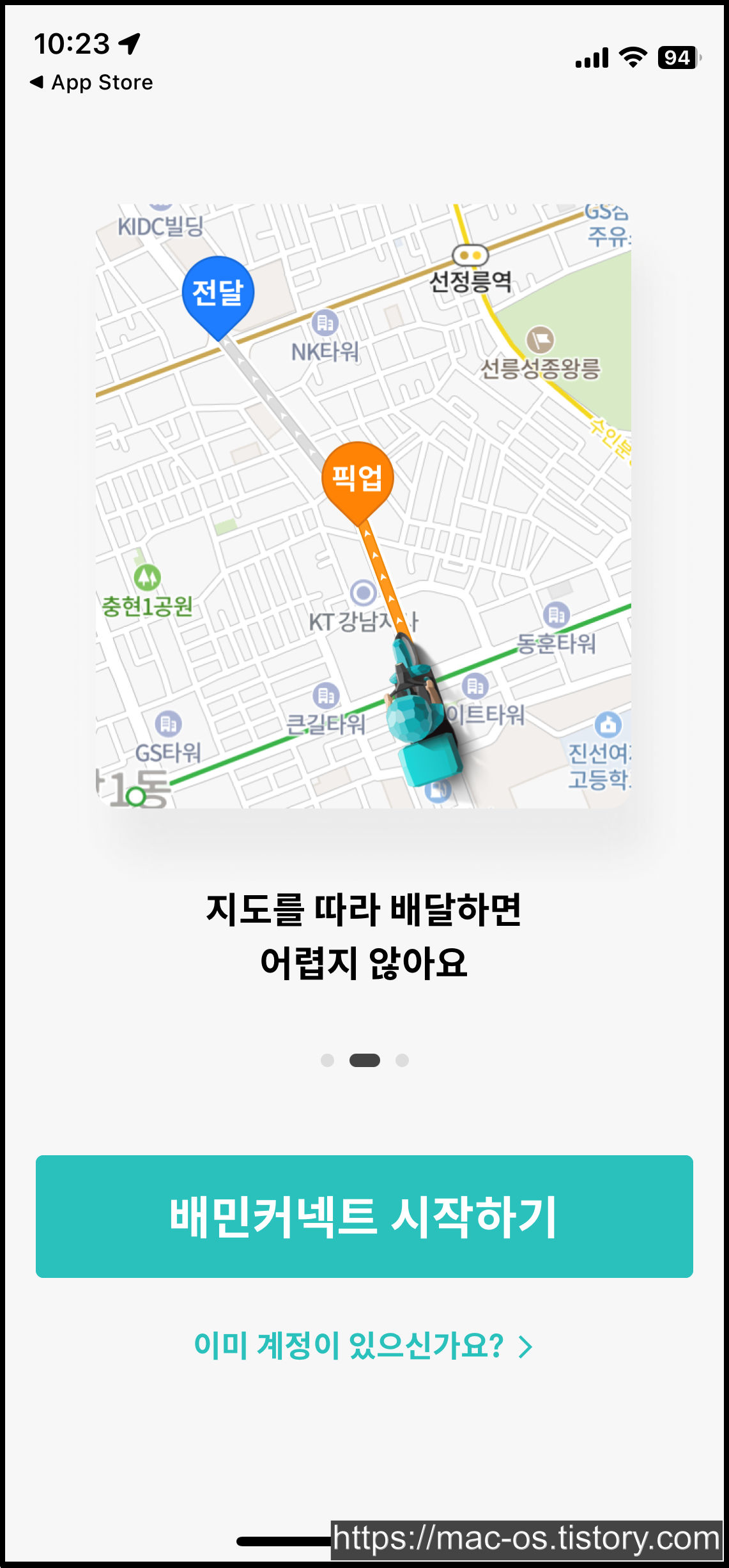 우선 앱스토어에서 배민커넥트 앱을 설치하고 실행해주세요.