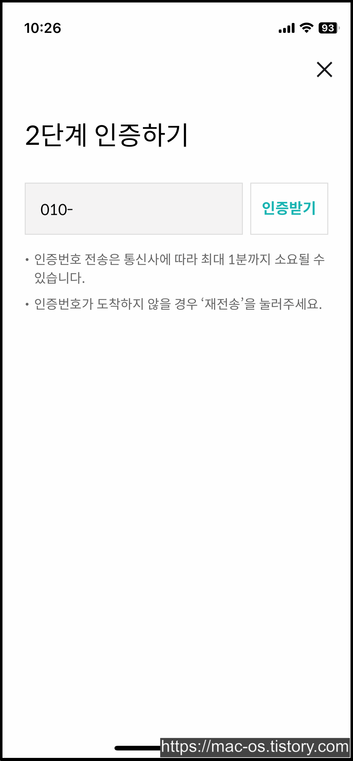 가입한 아이디로 로그인하면 휴대폰 문자 인증을 하게 되는데요.