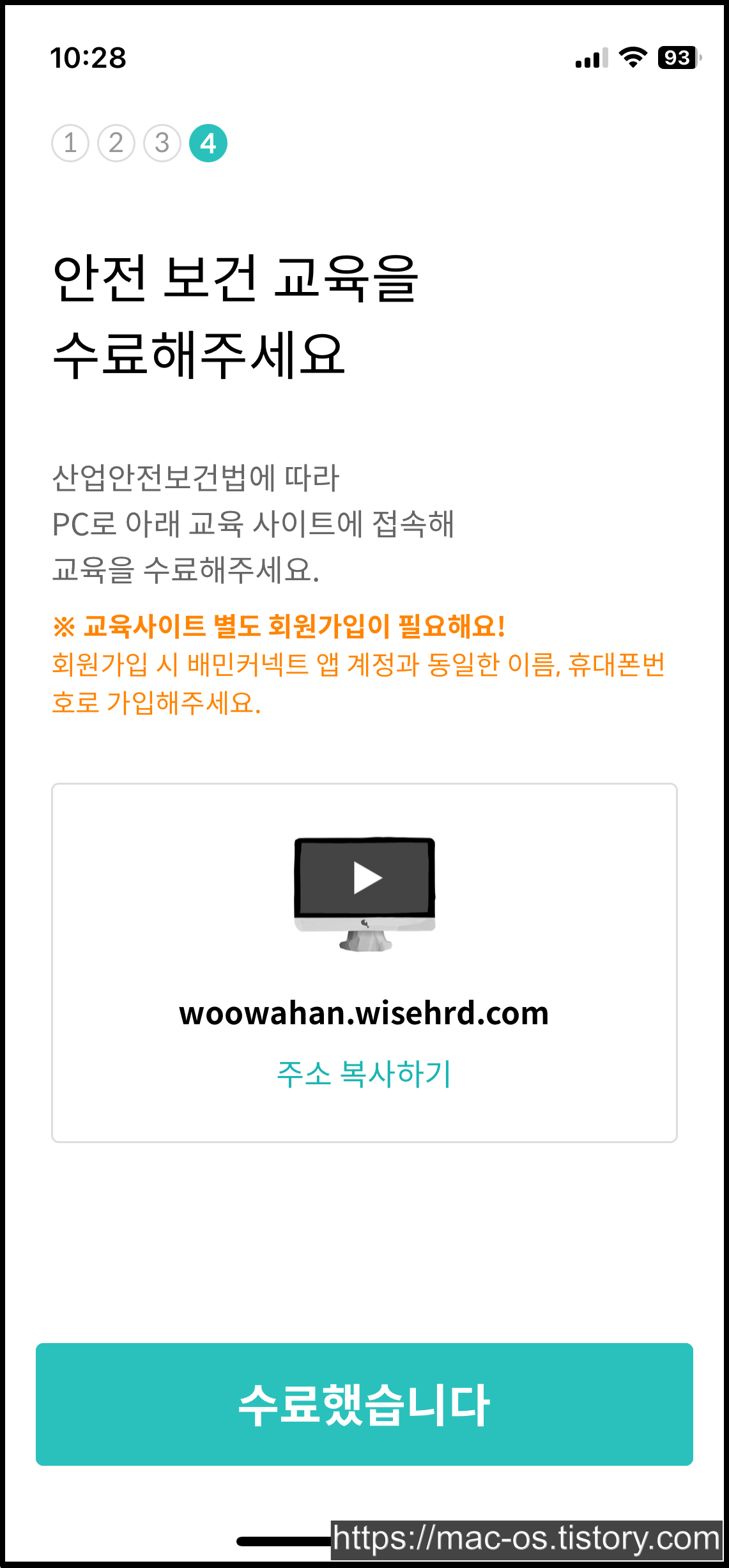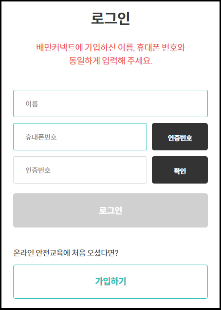 배민커넥트 안전 보건 교육 듣기