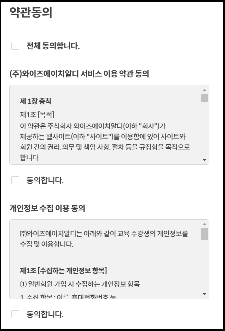 약관동의를 체크하면 가입이 완료됩니다.