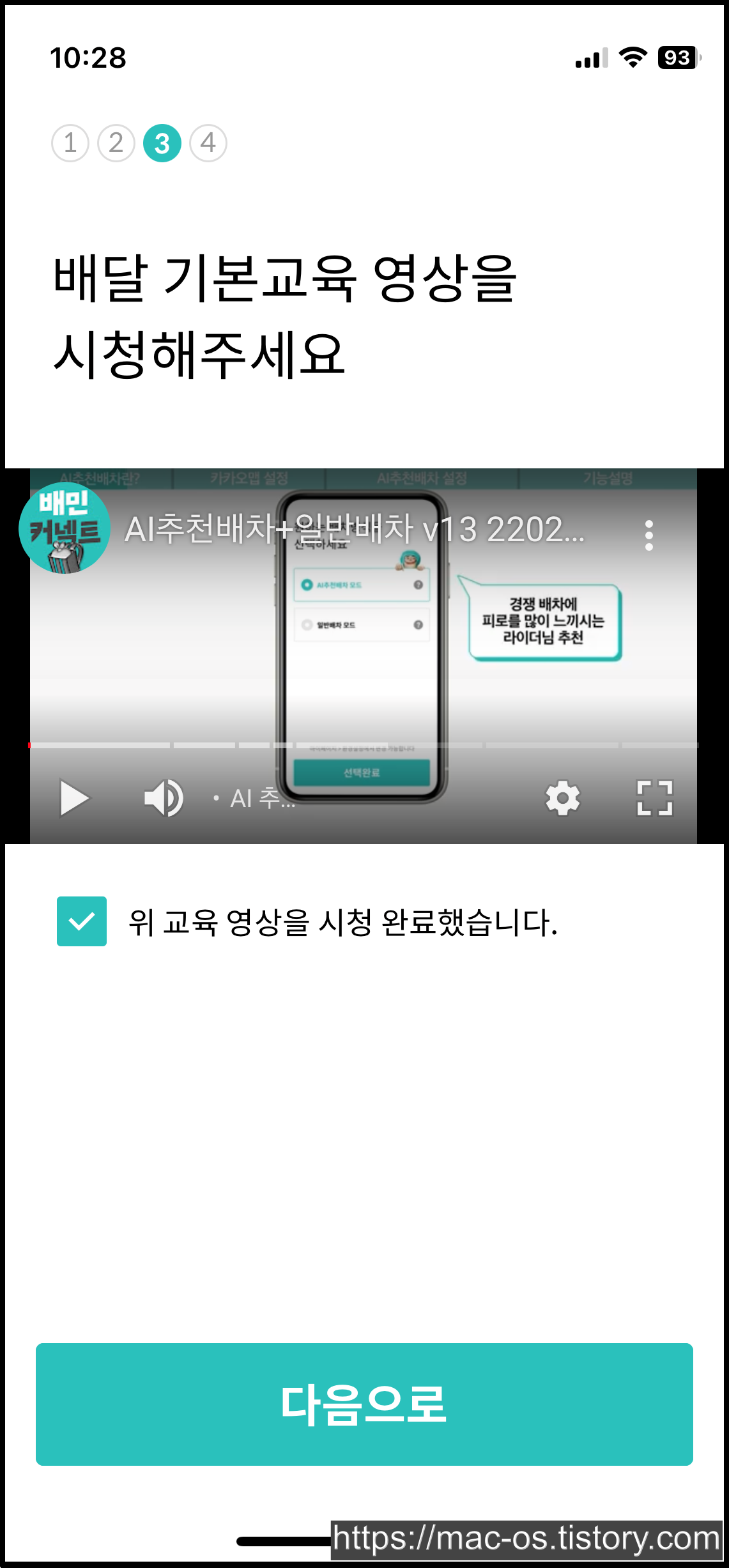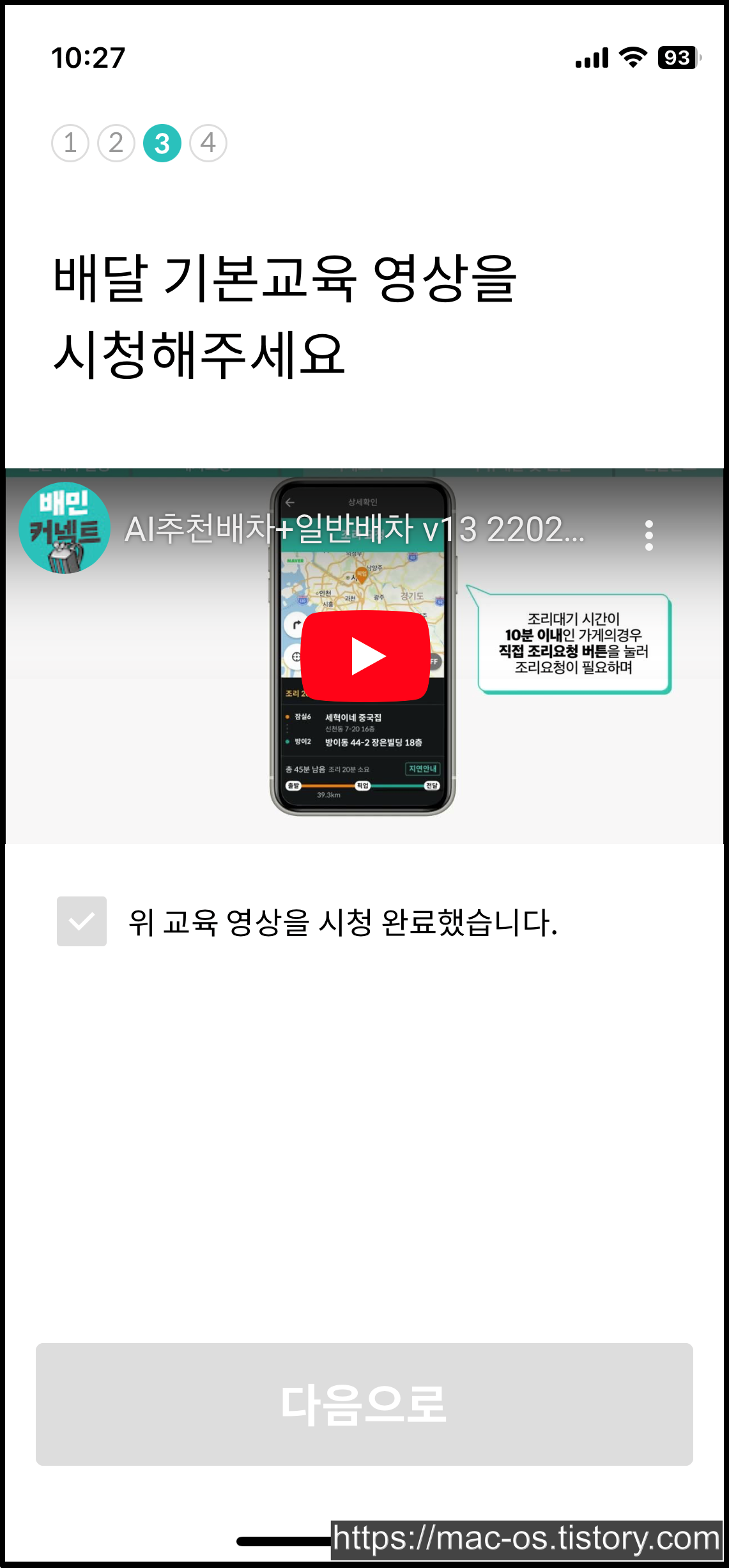계좌정보를 입력하고 배달 기본교육 영상을 시청해줍니다.