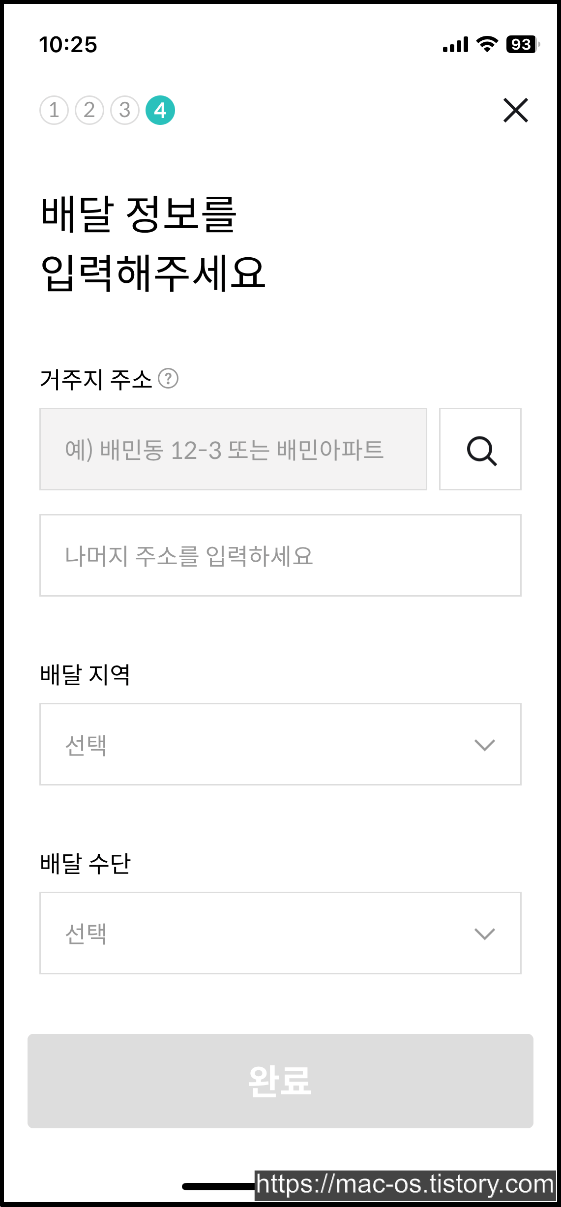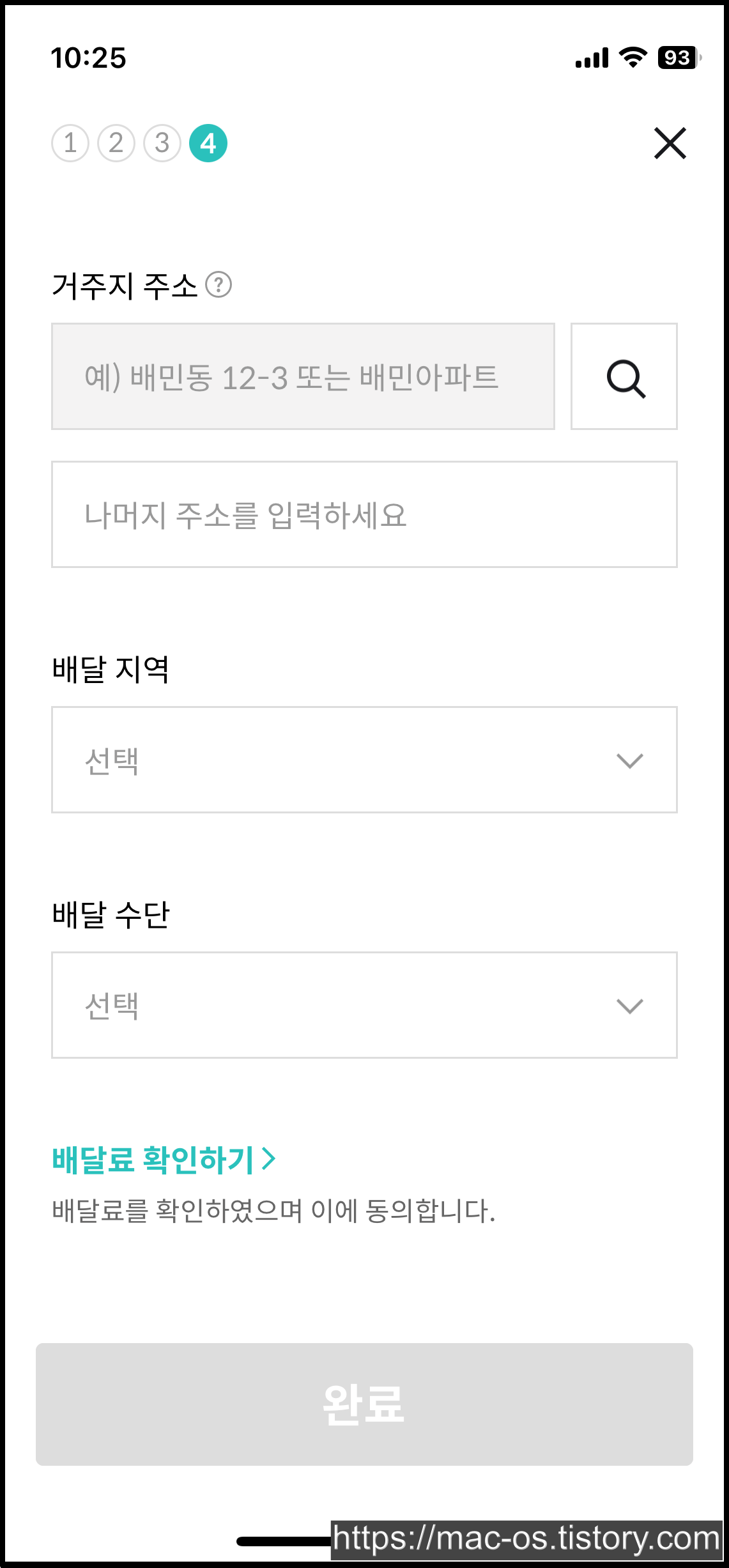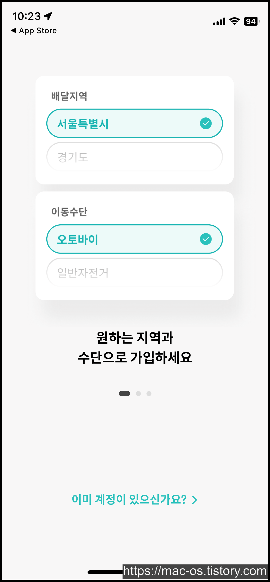 거주지 주소, 배달 지역, 배달 수단을 입력하면 신규 가입이 완료됩니다.