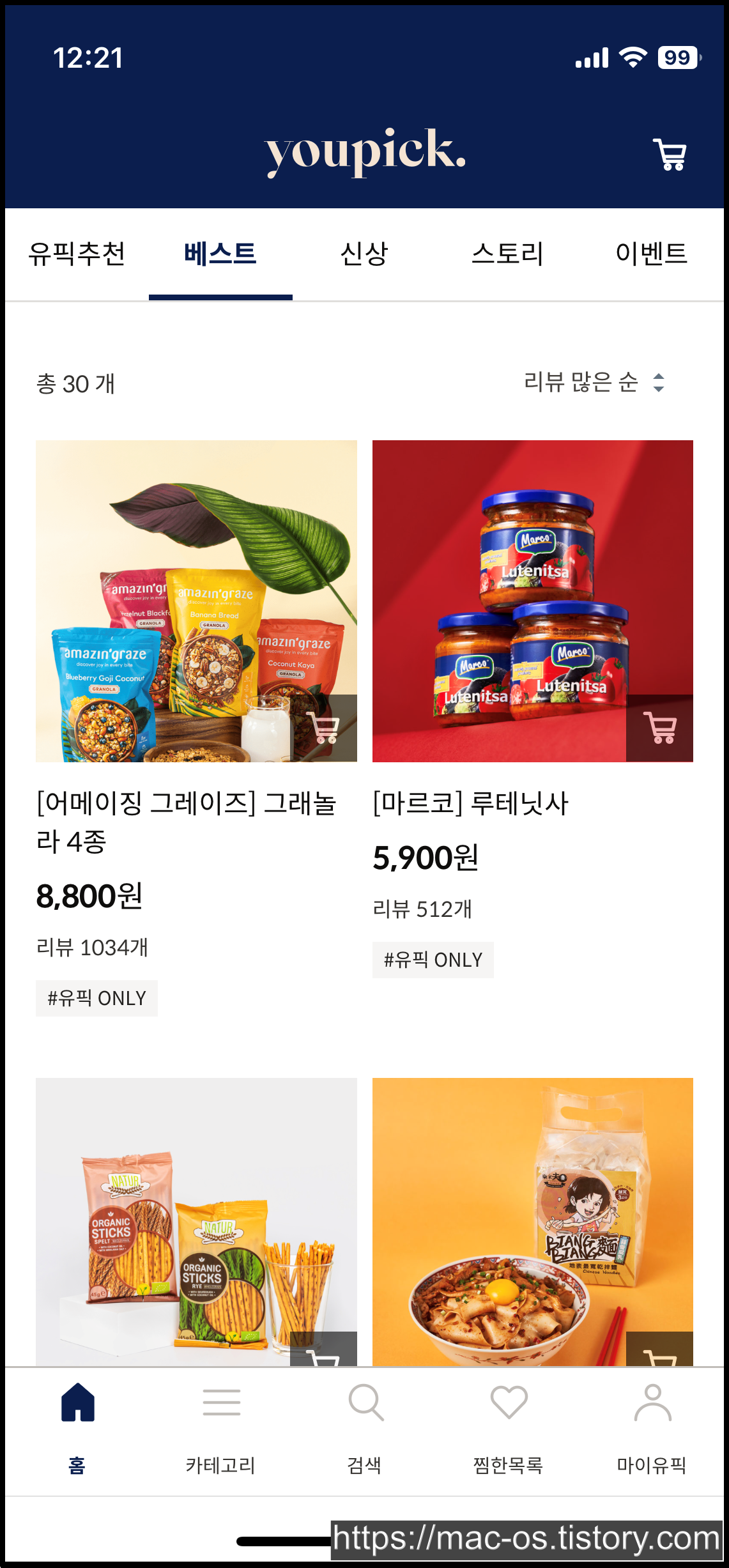 유픽은 그래놀라나 루테닛사, 나투르, 챠밍커플 등 처음 보는 해외 식품을 저렴하게 판매하는 사이트다. 생각보다 리뷰가 많은 걸 봐서 의외로 인기가 있는 듯하다.