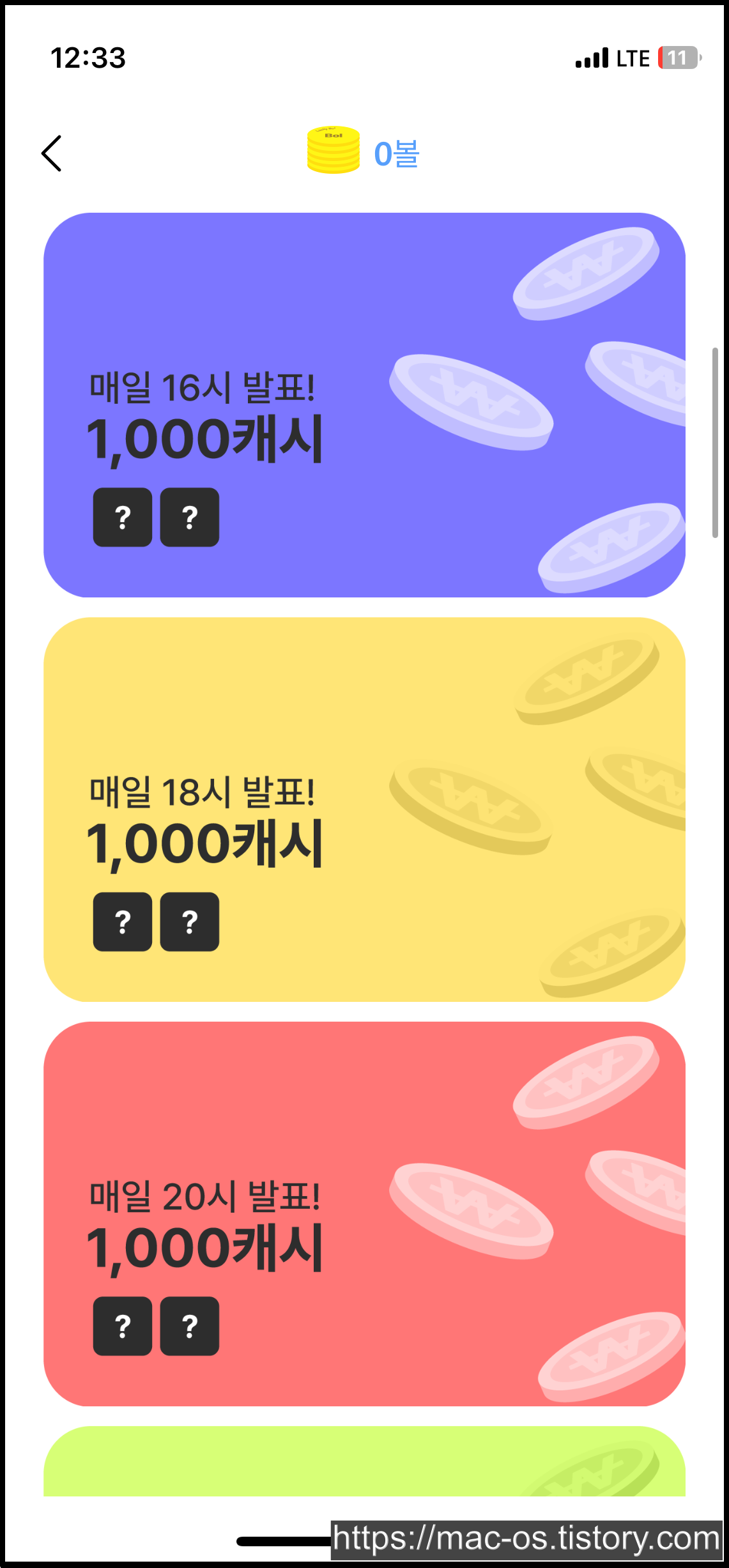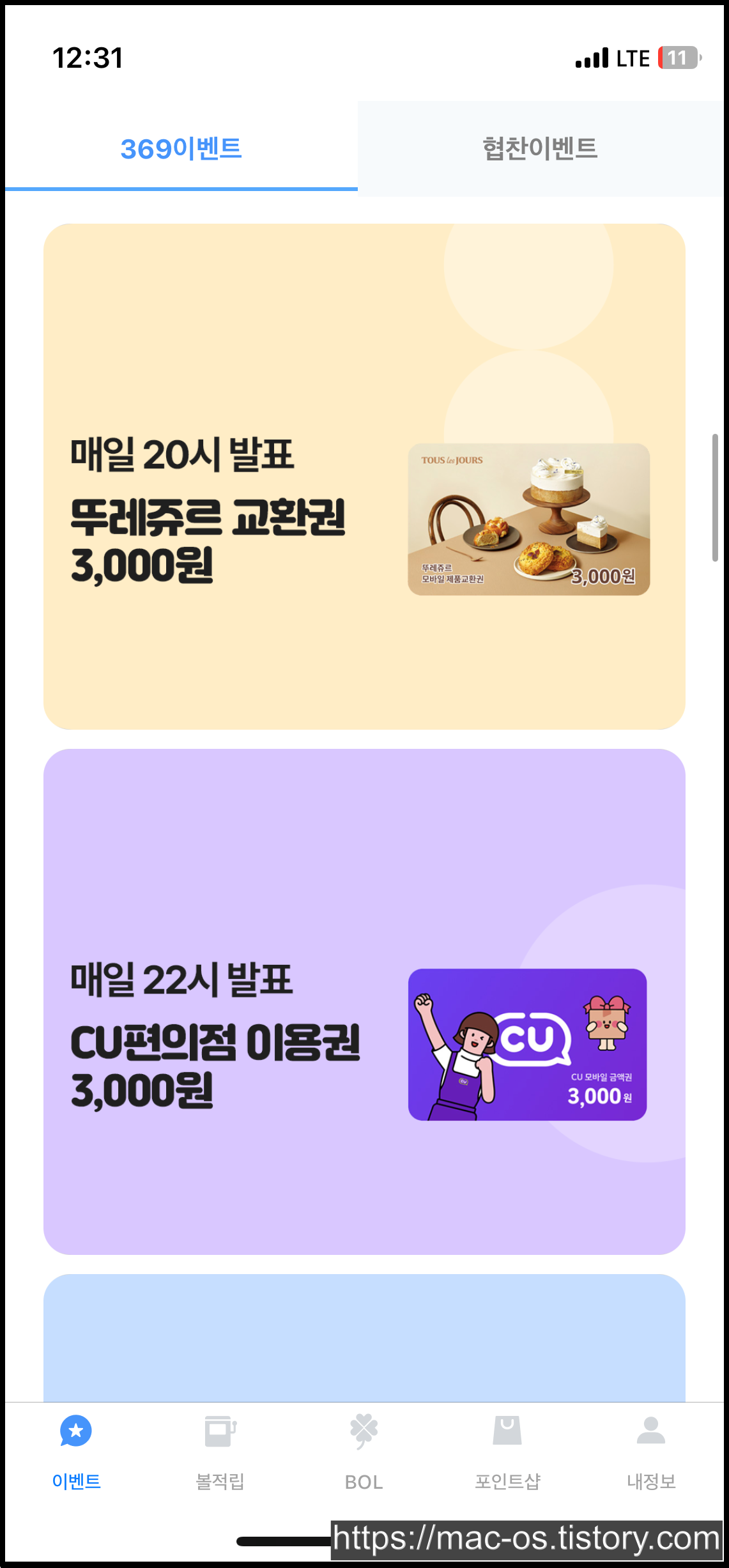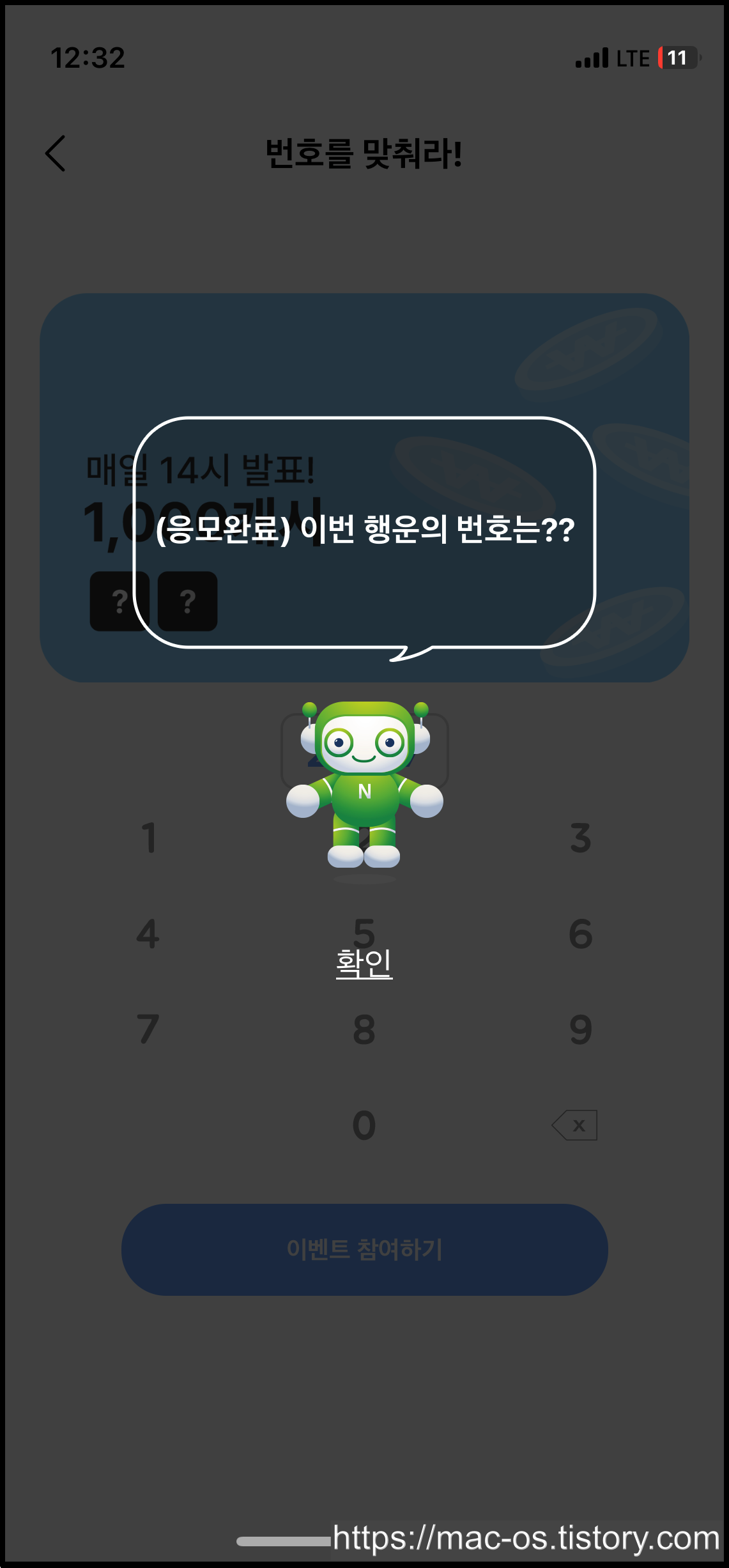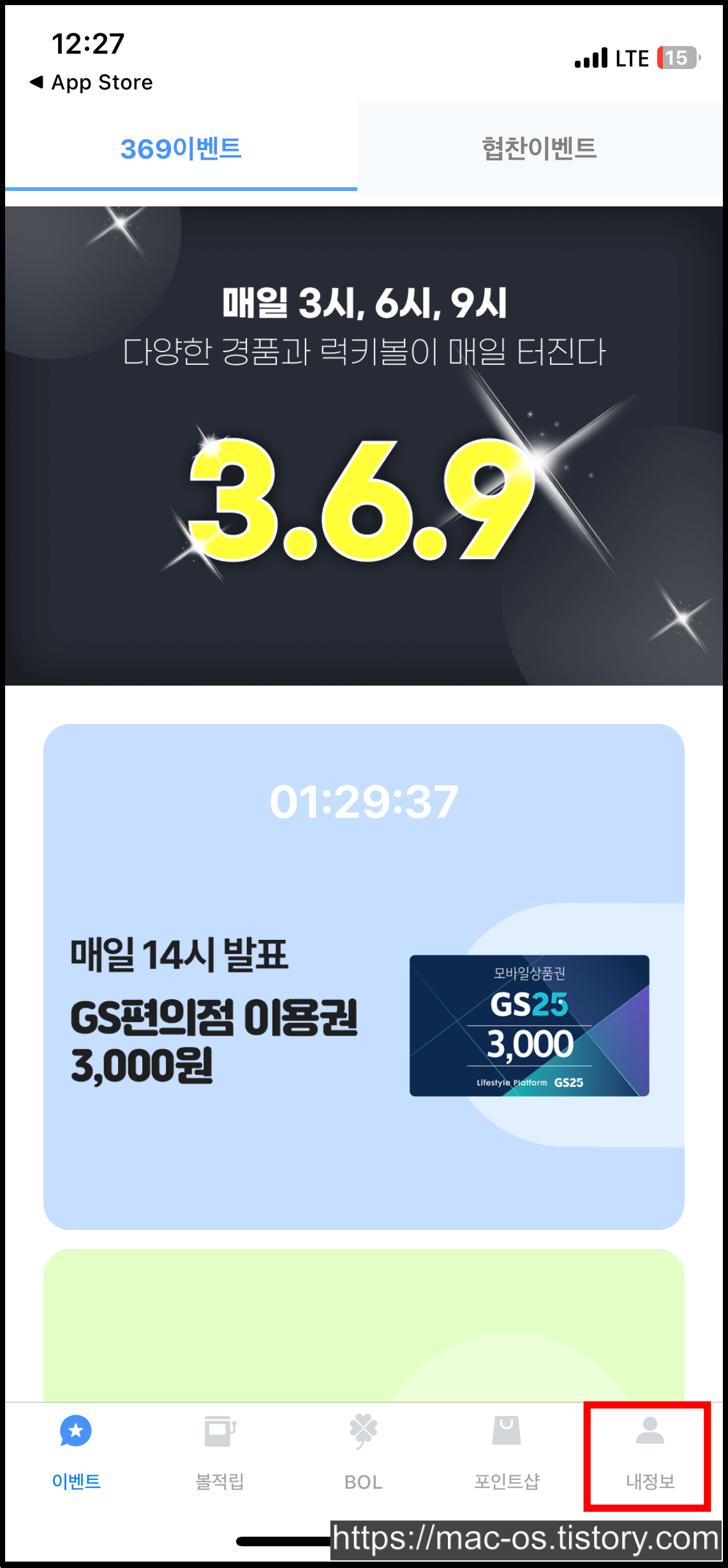 BOL 탭으로 이동하면 여러 배너가 있는데, 아무거나 눌러서 원하는 숫자를 입력하면 응모가 완료돼요. 번호를 맞추면 배너에 기재된 금액만큼 포인트를 받을 수 있고, 만약 여러 명이 맞추면 1/N 분산해서 준다고 하네요.
