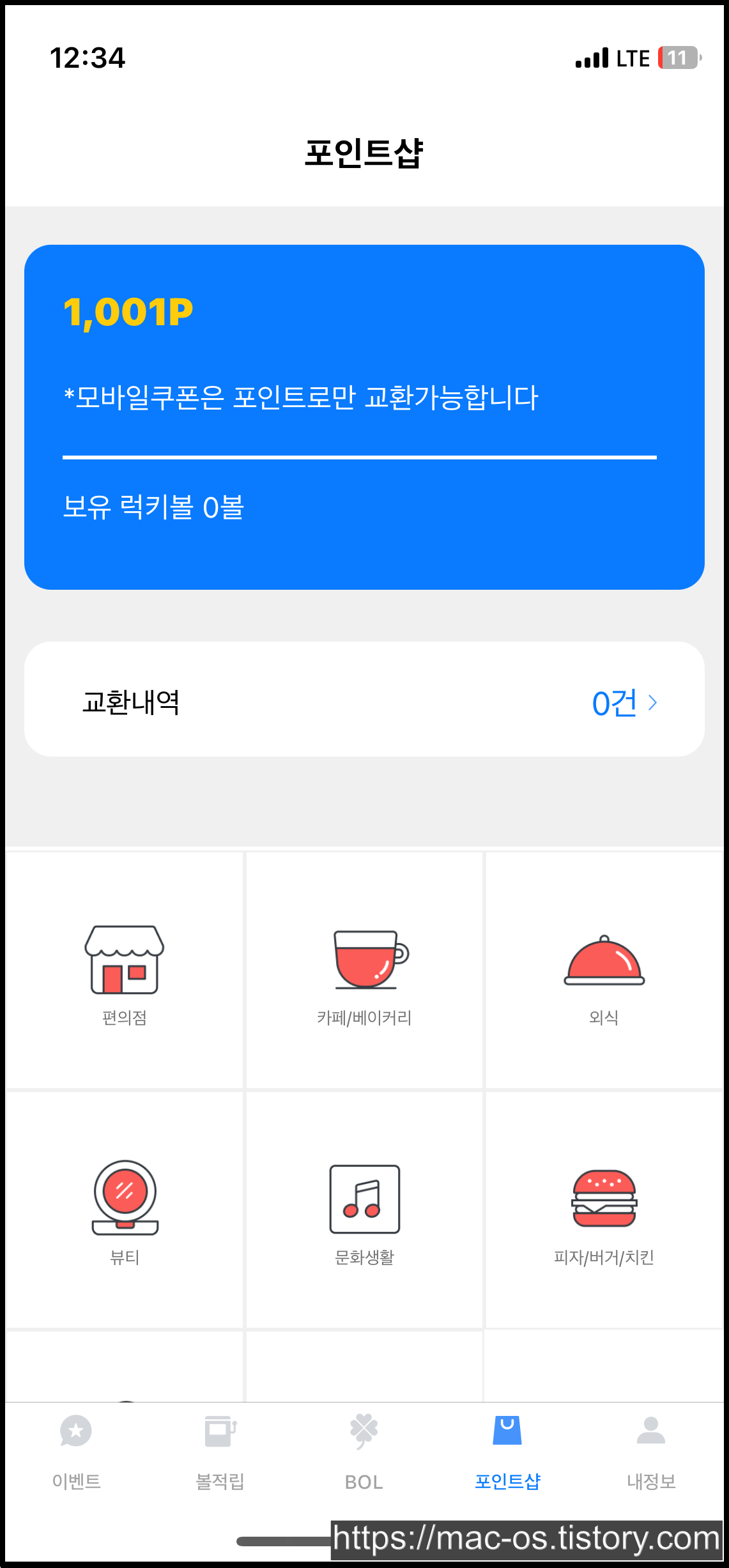 포인트는 포인트샵에서 편의점이나 카페/베이커리, 외식, 뷰티, 문화생활 등 다양한 분야의 기프티콘 또는 상품권을 구매하는 용도로 사용이 가능해요.