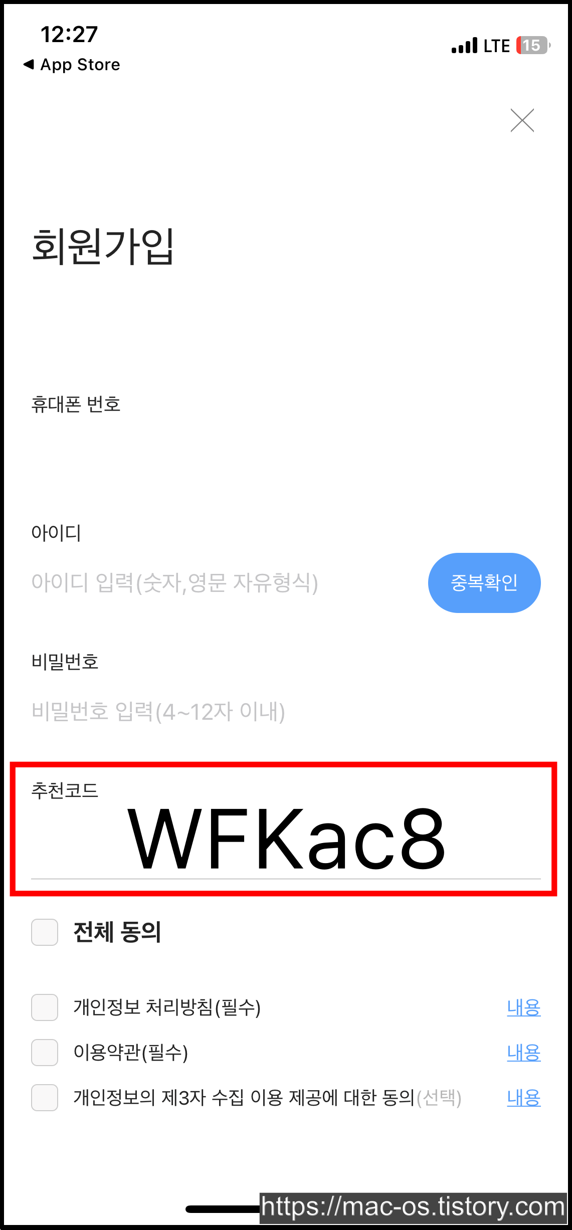 휴대폰 인증 후 아이디와 비밀번호, 추천코드를 입력하면 가입이 완료됩니다. 추천코드를 입력하고 가입하면 1,000포인트를 받으실 수 있으니 꼭 입력하세요.