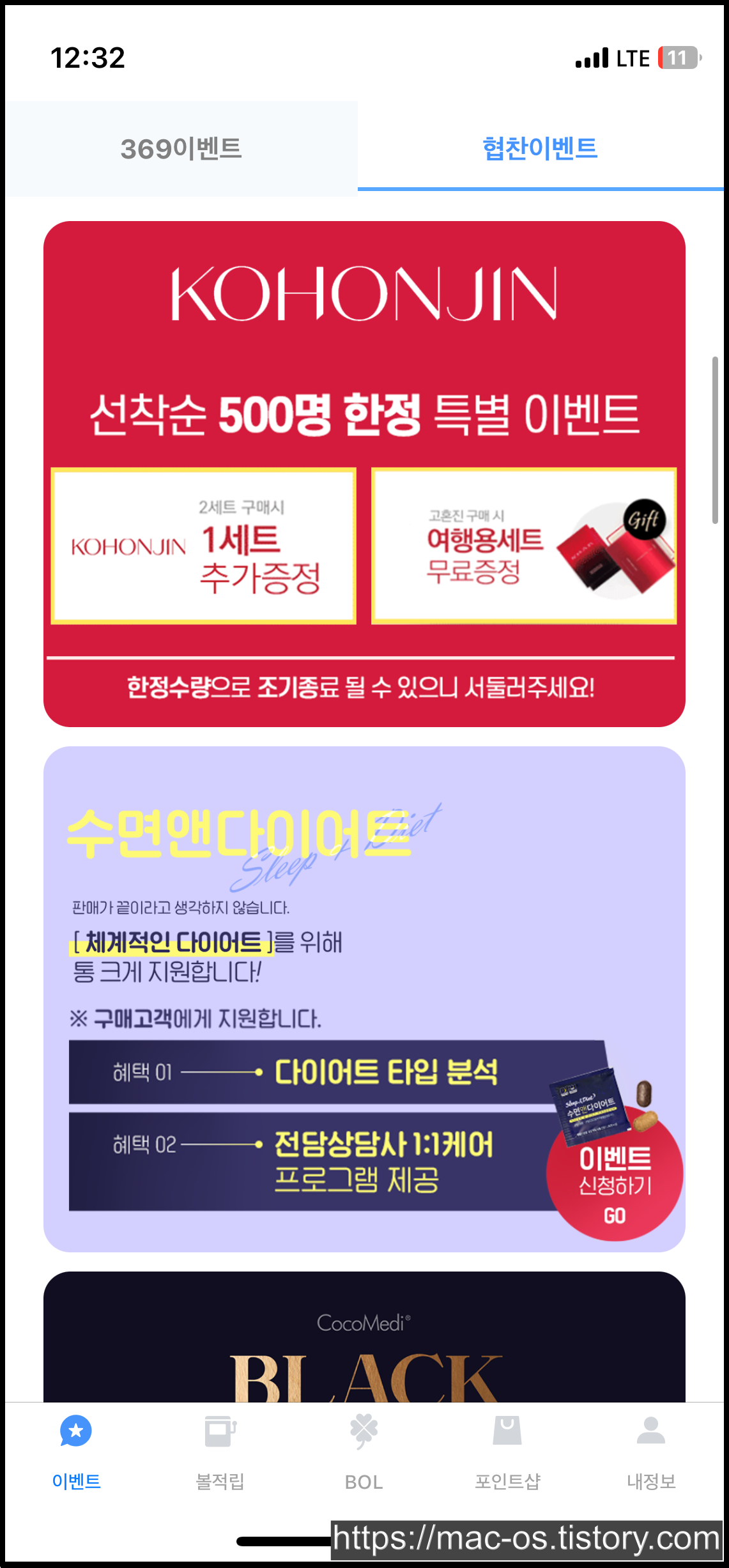 협찬이벤트 탭으로 이동해보면 여기도 여러 배너가 있는데, 아무거나 배너를 터치해보면 여기도 응모가 됩니다.