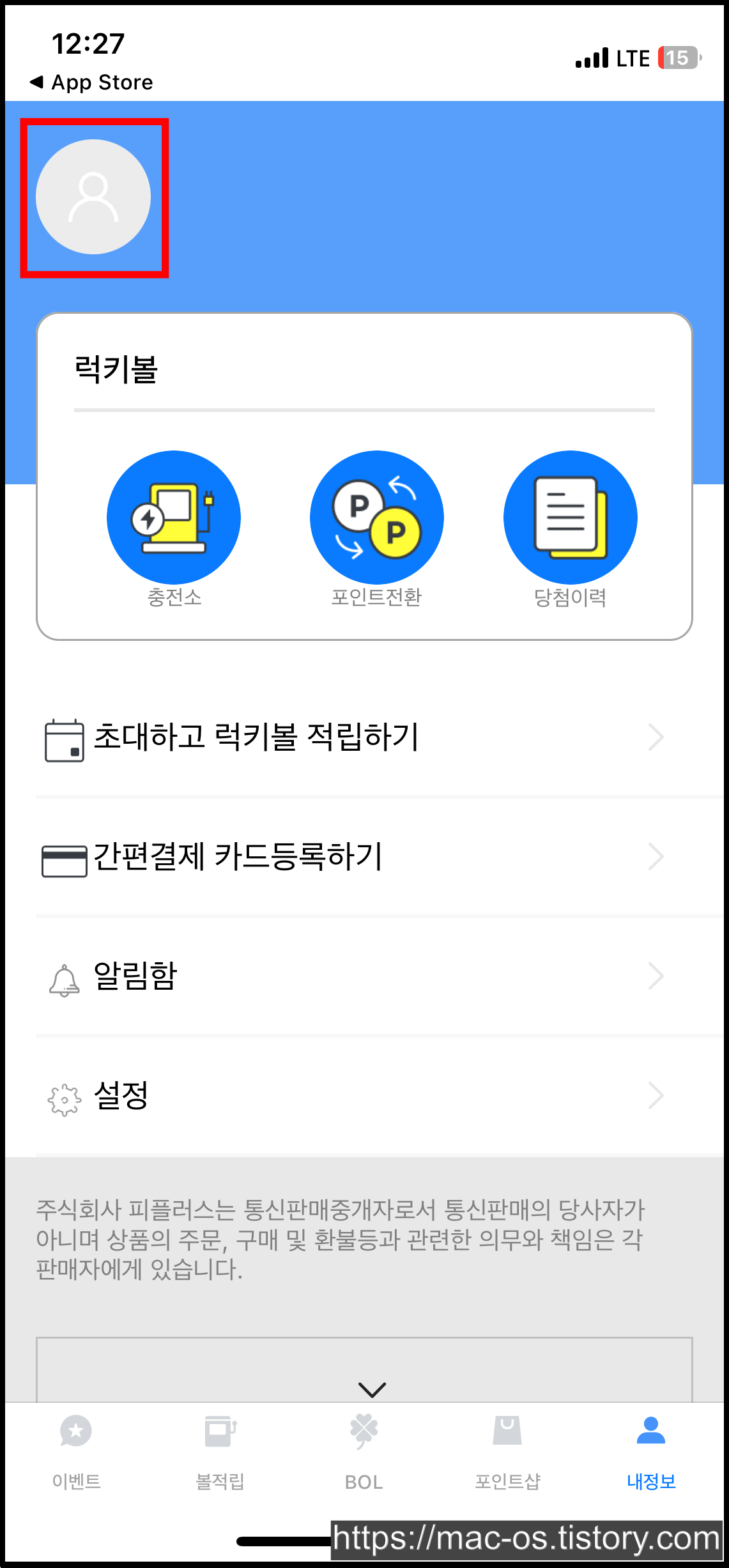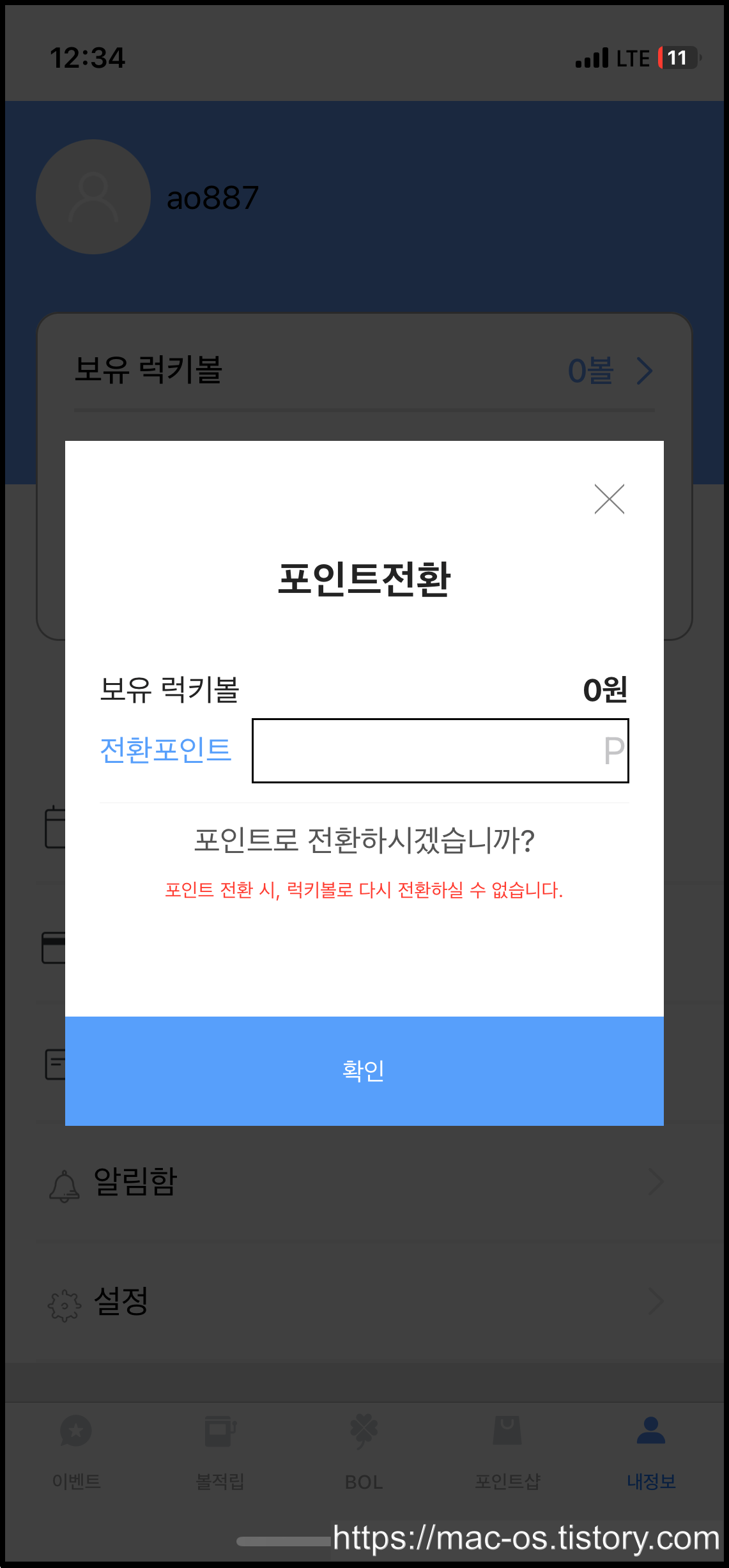 럭키볼은 내정보에서 포인트로 전환할 수 있어요.