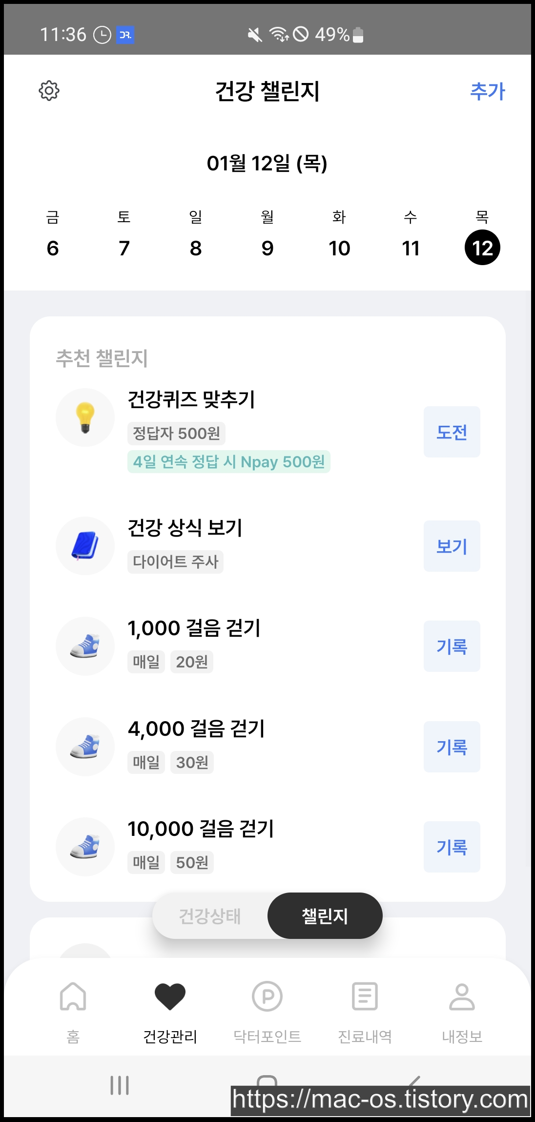 진료 후에는 의사 선생님의 건강조언과 건강 챌린지 제안을 받을 수 있으며, 건강 챌린지를 진행하며 기록한 건강 정보 내역을 한눈에 살펴볼 수 있습니다.