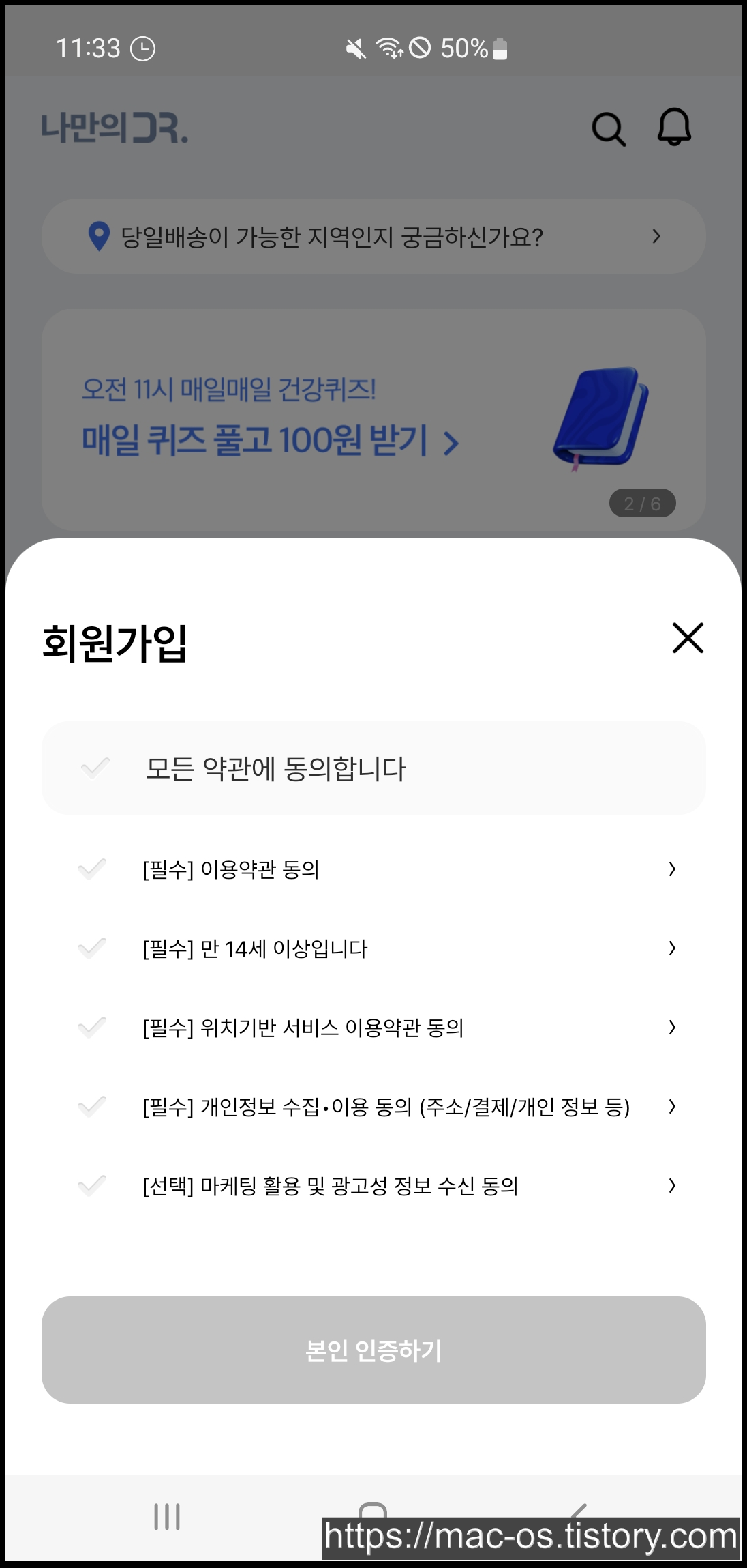 휴대폰 본인인증을 마치면 회원가입이 완료됩니다.