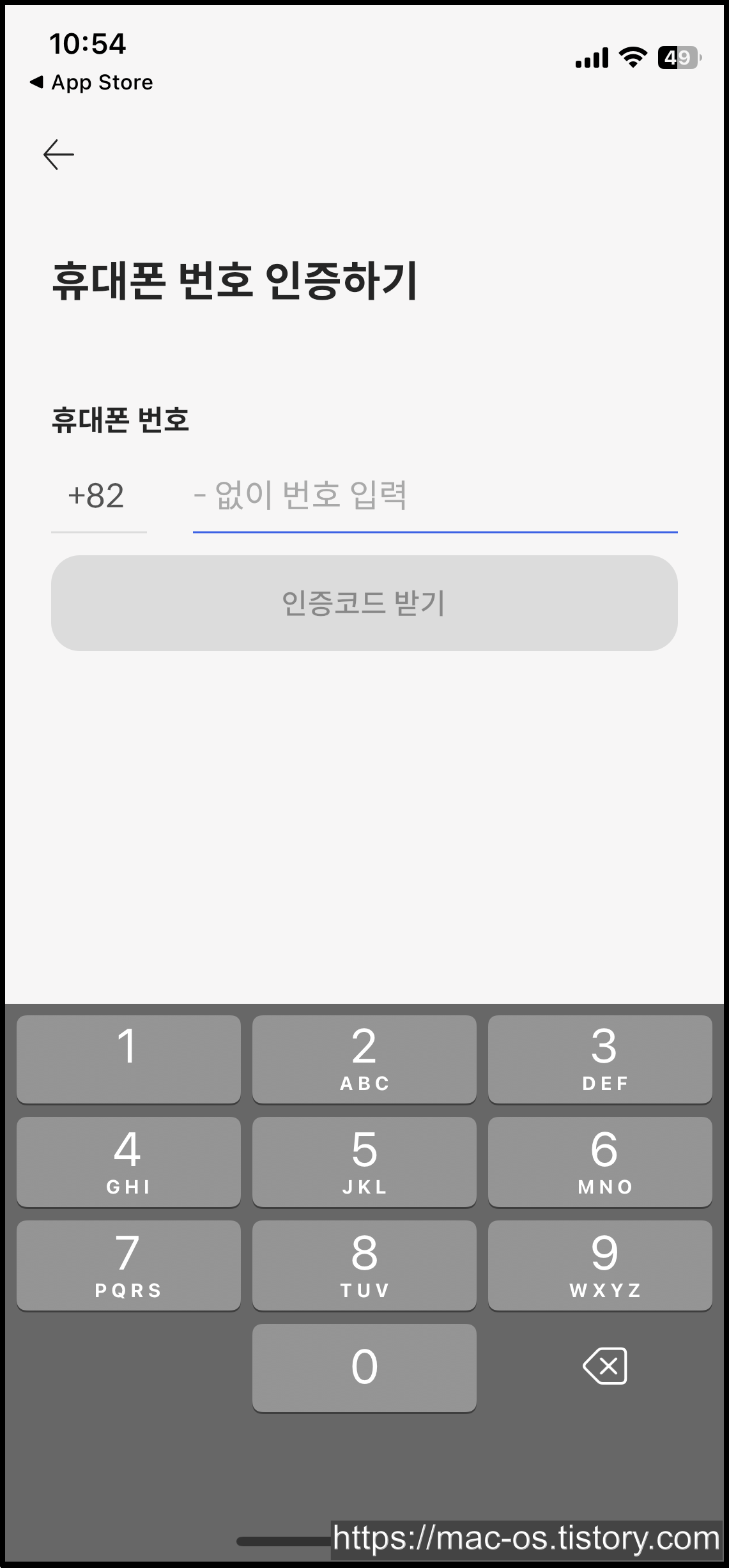 약관동의 후 휴대폰 번호를 입력합니다.