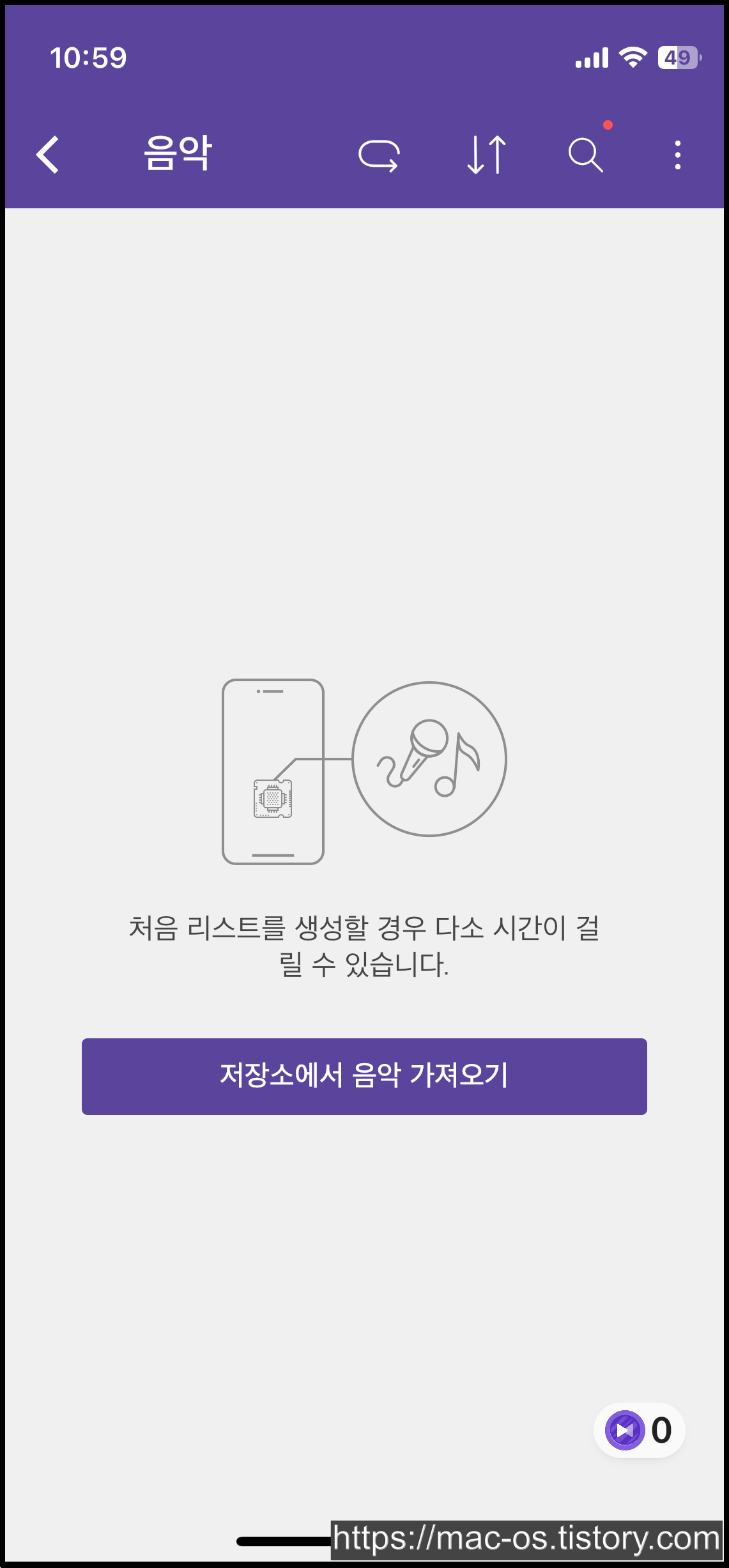 KM플레이어는 앱스토어 또는 플레이 스토어에서 설치할 수 있습니다. 앱 설치 후 우측 하단 [KM Plex]을 터치합니다.