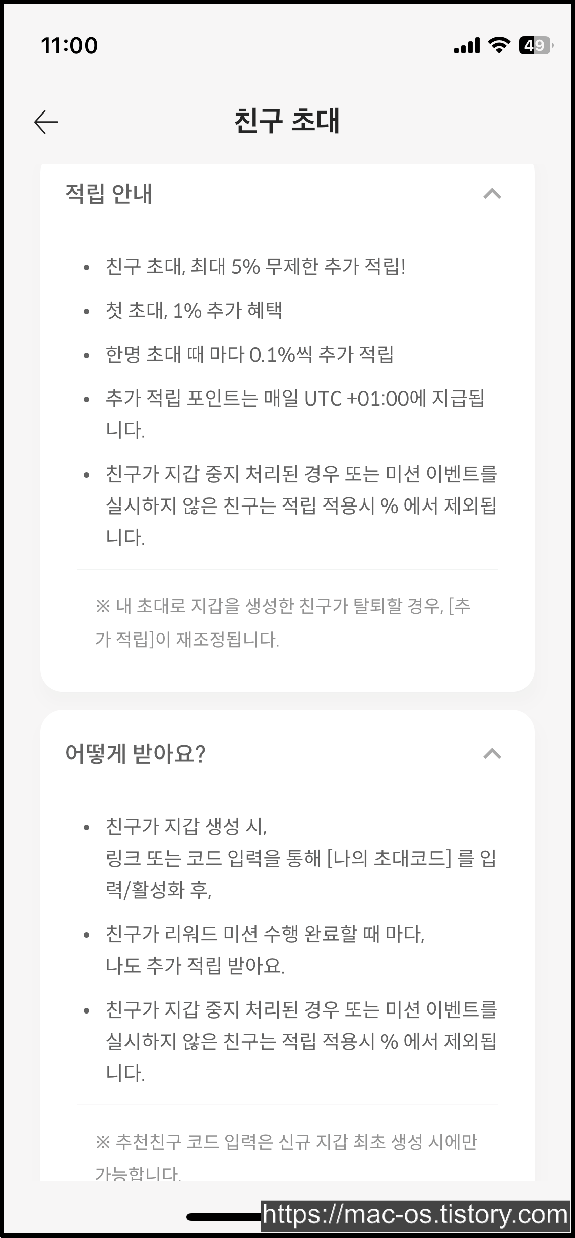 추가 적립 포인트는 매일 UTC 01시에 지급되며, 친구가 지갑 중지 처리된 경우 또는 미션 이벤트를 실시하지 않은 친구를 적립 적용시 %에서 제외됩니다.