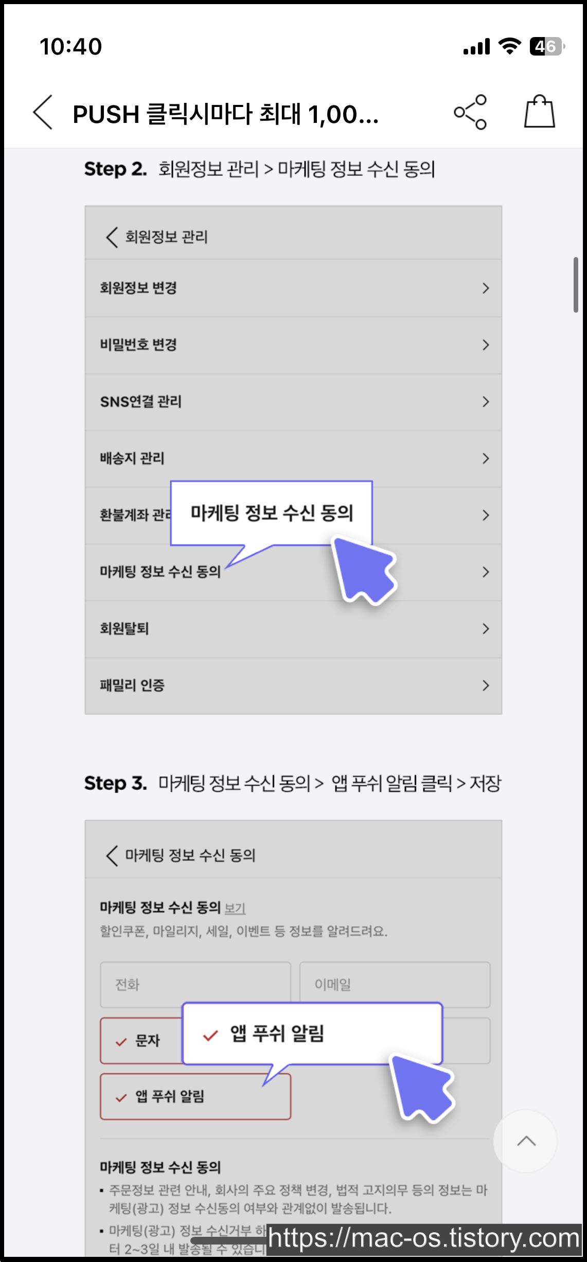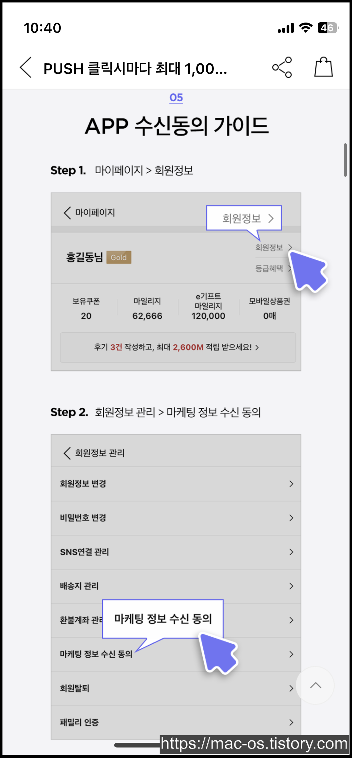 LF몰 APP 수신동의는 마이페이지에서 회원정보로 이동하여, 마케팅 정보 수신 동의로 들어가서 앱 푸쉬 알림을 체크하면 됩니다.