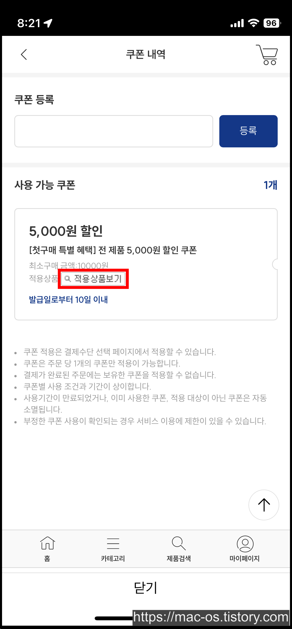 회원가입을 마치면 첫구매 특별 혜택으로 5천원 할인 쿠폰이 1개 지급됩니다. 최소 구매 금액 1만원부터 사용이 가능합니다.