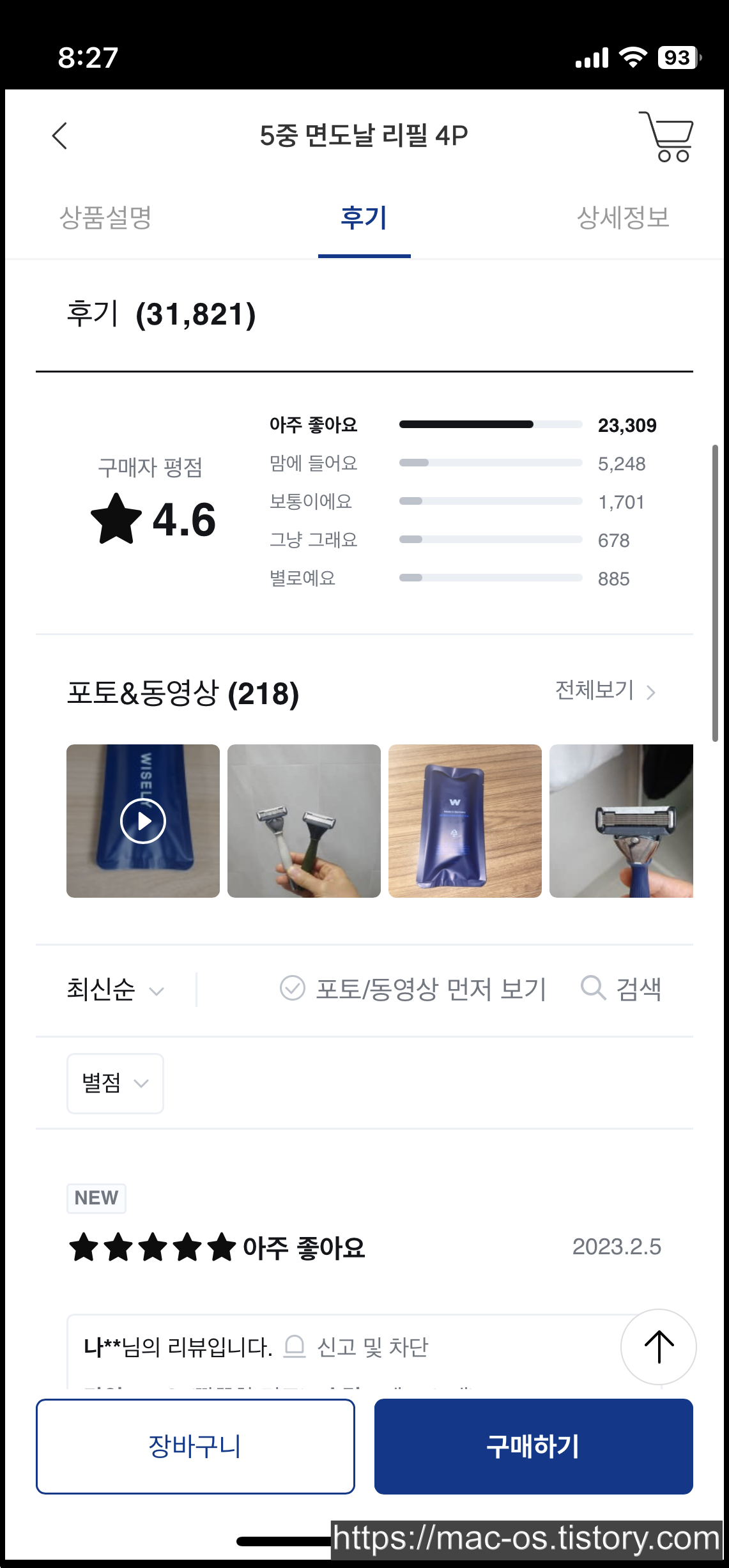 하지만 와이즐리에서는 5중 면도날 4입을 5,490원에 판매하고 있습니다. 이것도 1개 가격을 계산해보면 1372원이 나옵니다. 상당히 저렴하죠.