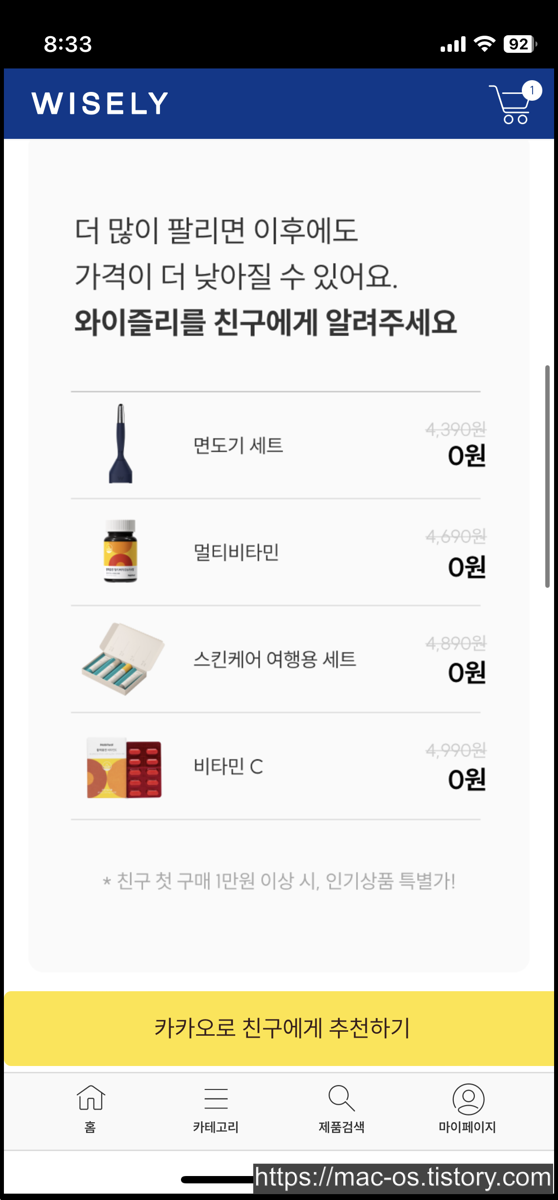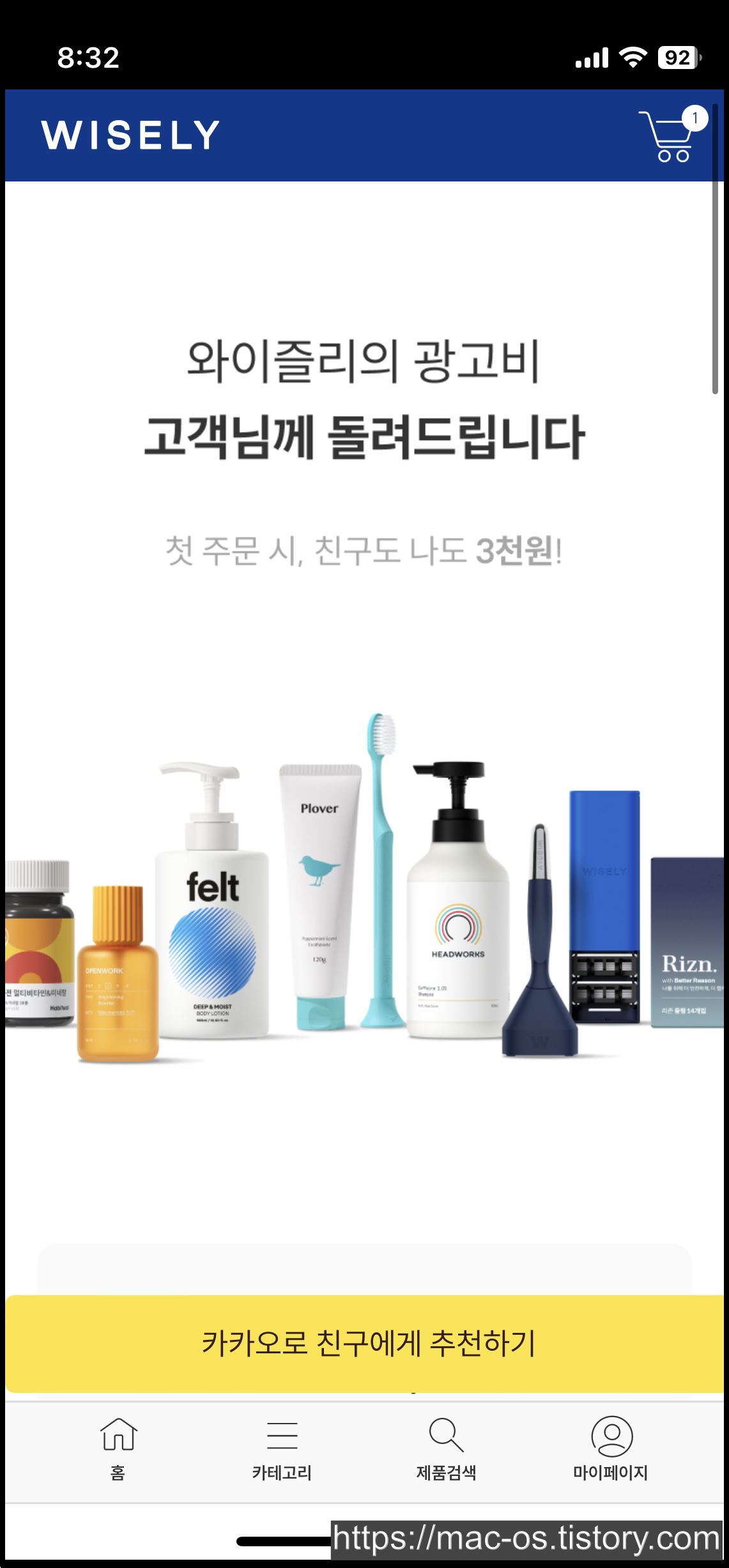 와이즐리에서 사용하는 전략은 박리다매인 것 같습니다. 와이즐리의 상품이 더 많이 팔리면 이후에도 가격이 더 낮아질 수 있다고 합니다. 추천받은 친구가 첫 구매하면 친구도 나도 적립금 3천원을 받을 수 있습니다.