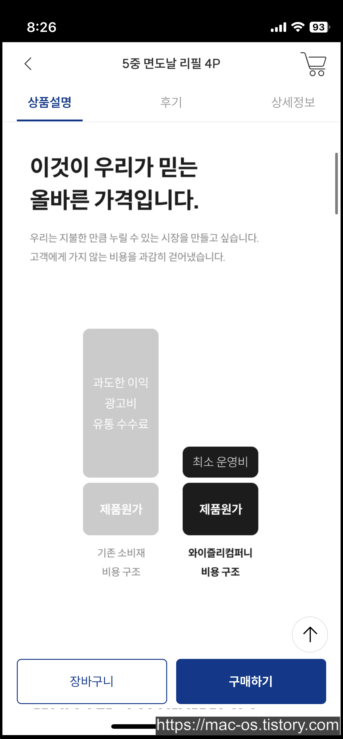 와이즐리에서 판매하는 5중 면도날 4입의 가격은 원래 26,900원이어야 합니다. 생활소비재의 가격에는 유통비, 과도한 광고비와 이익 등이 포함되어 있습니다. 이 때문에 우리는 원가보다 훨씬 비싼 가격을 지불해야 합니다.
