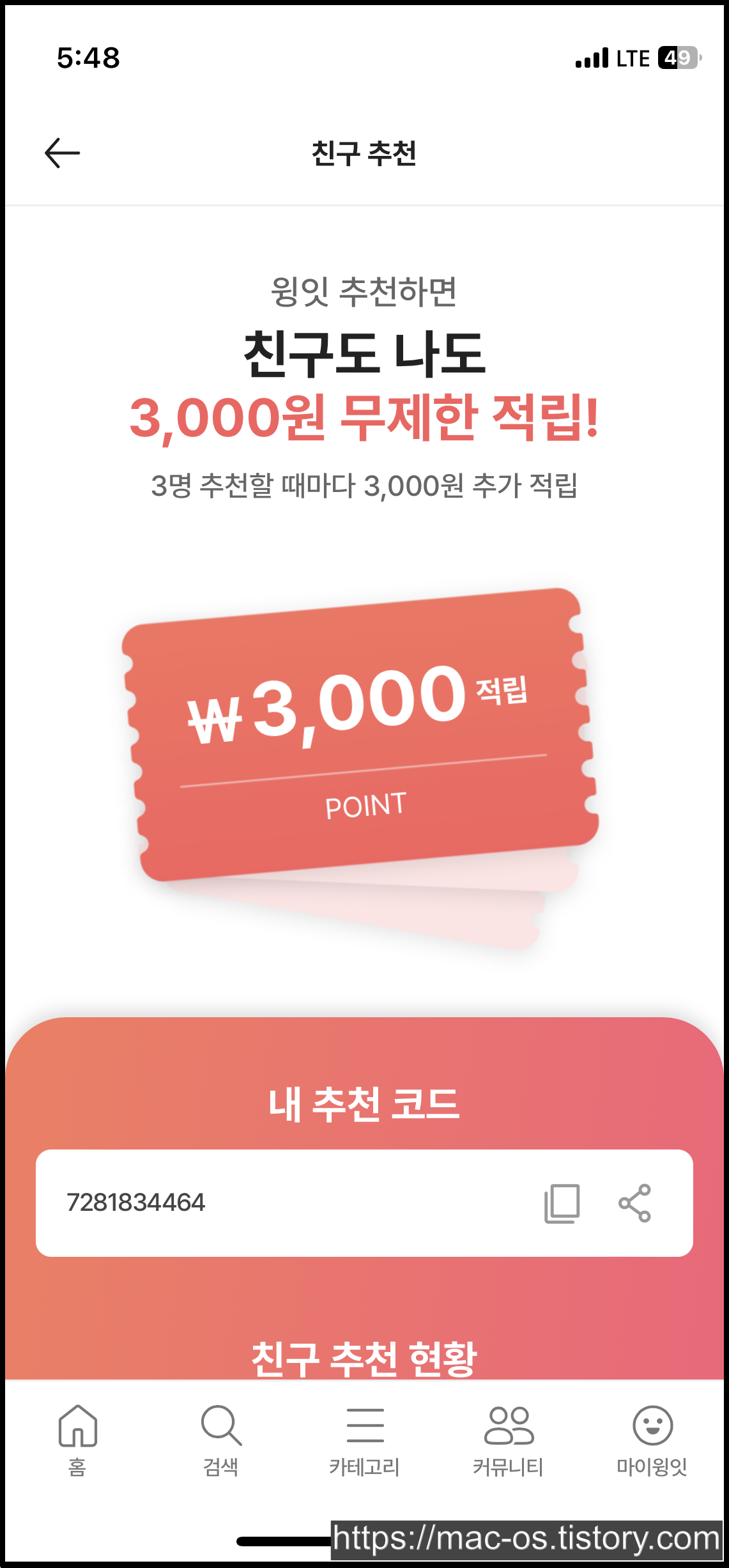 같은 사용자를 중복 추천할 경우 적립금이 지급되지 않습니다. 친구를 3명 초대할 때마다 적립금 3,000원이 추가로 적립됩니다.