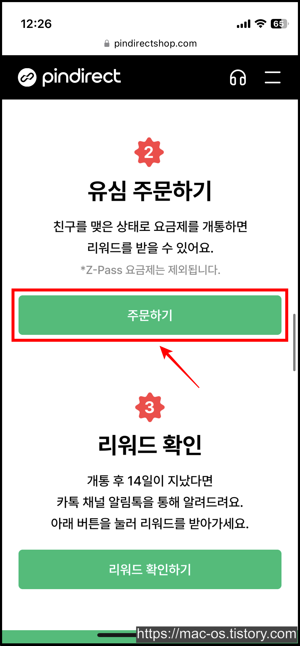 마지막으로 주문서를 확인하면 결제가 완료됩니다. 개통 이후 14일이 지났다면 리워드를 받을 수 있습니다.