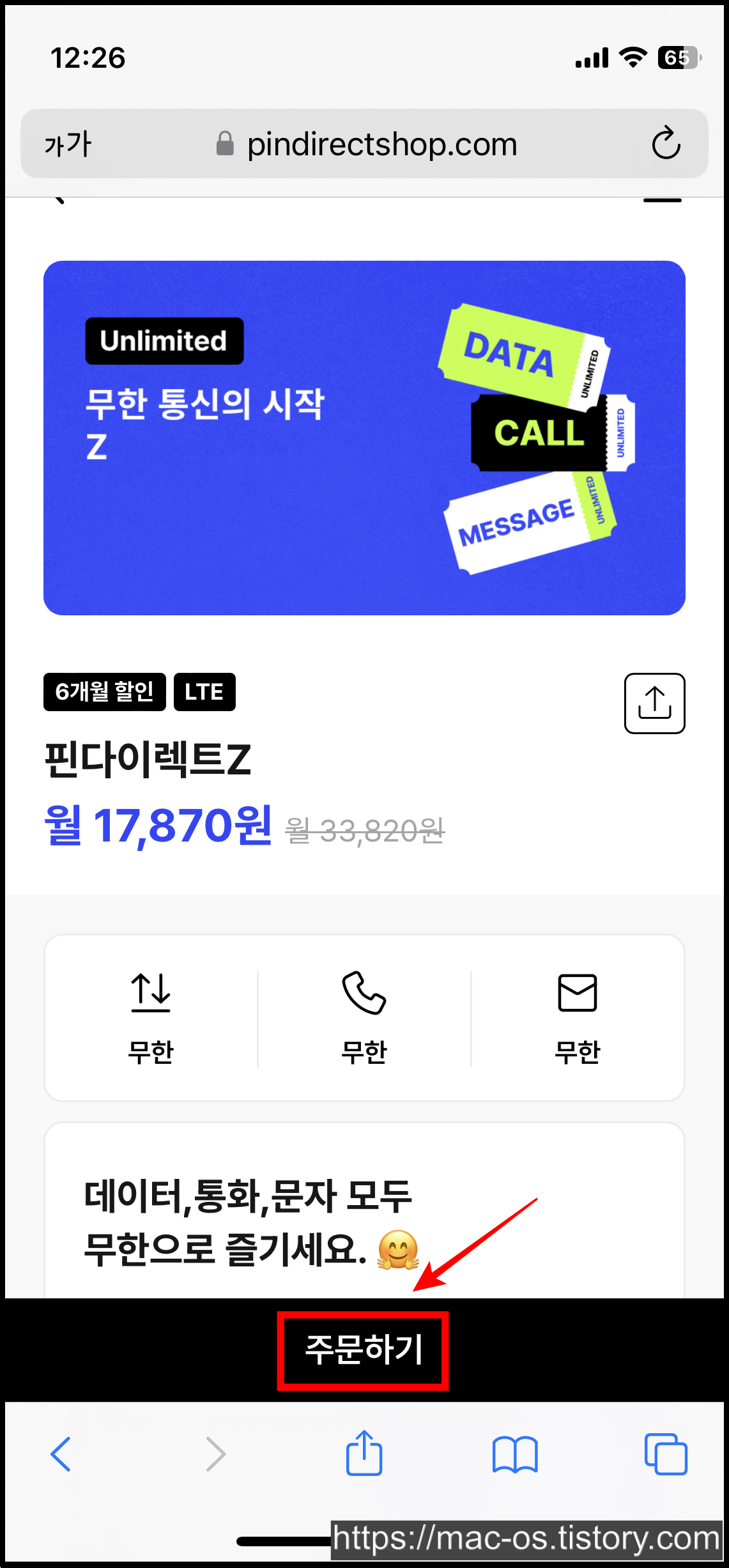 - 친구 맺기 완료 후, 유심 [주문하기] 클릭