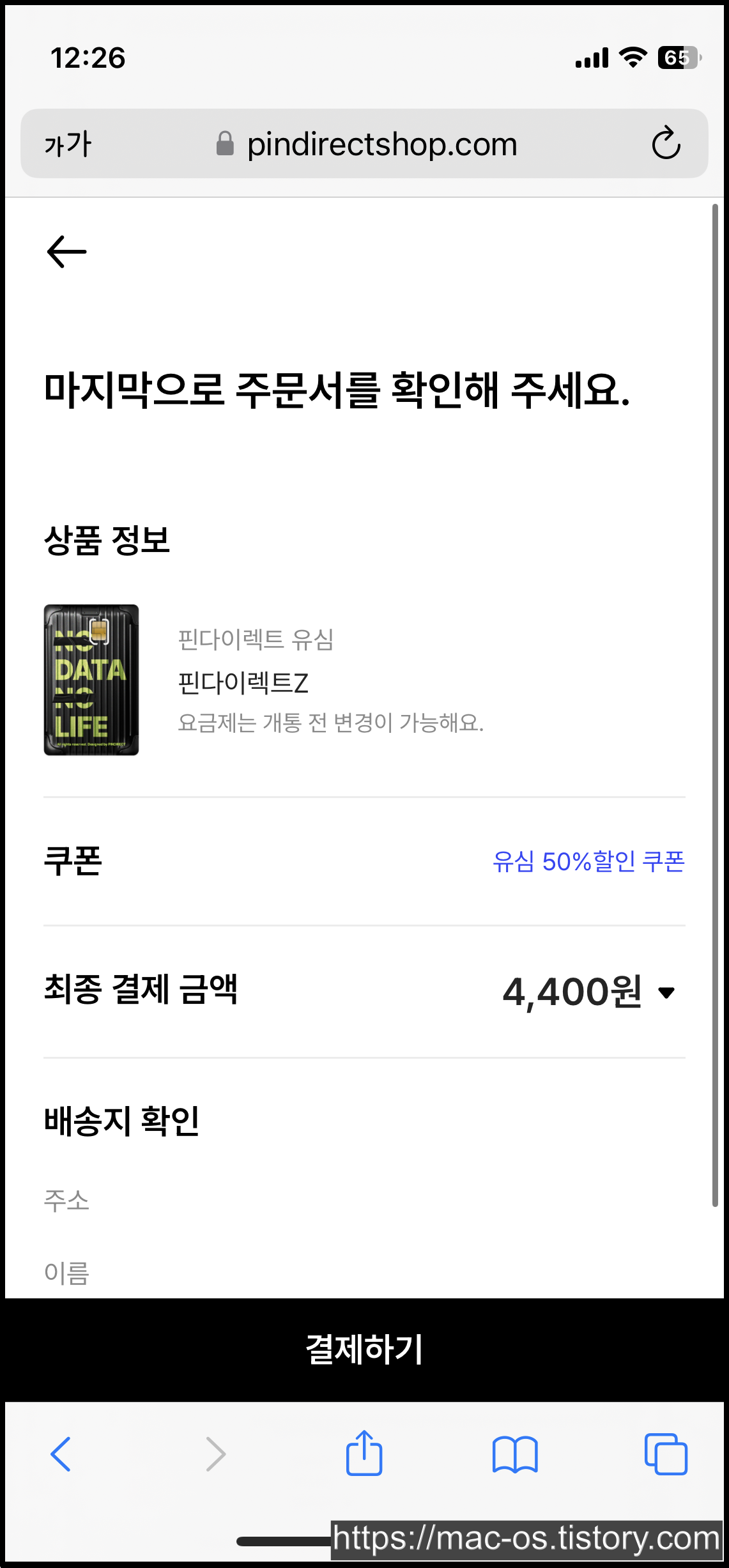 유심카드를 선택하고 배송주소를 입력