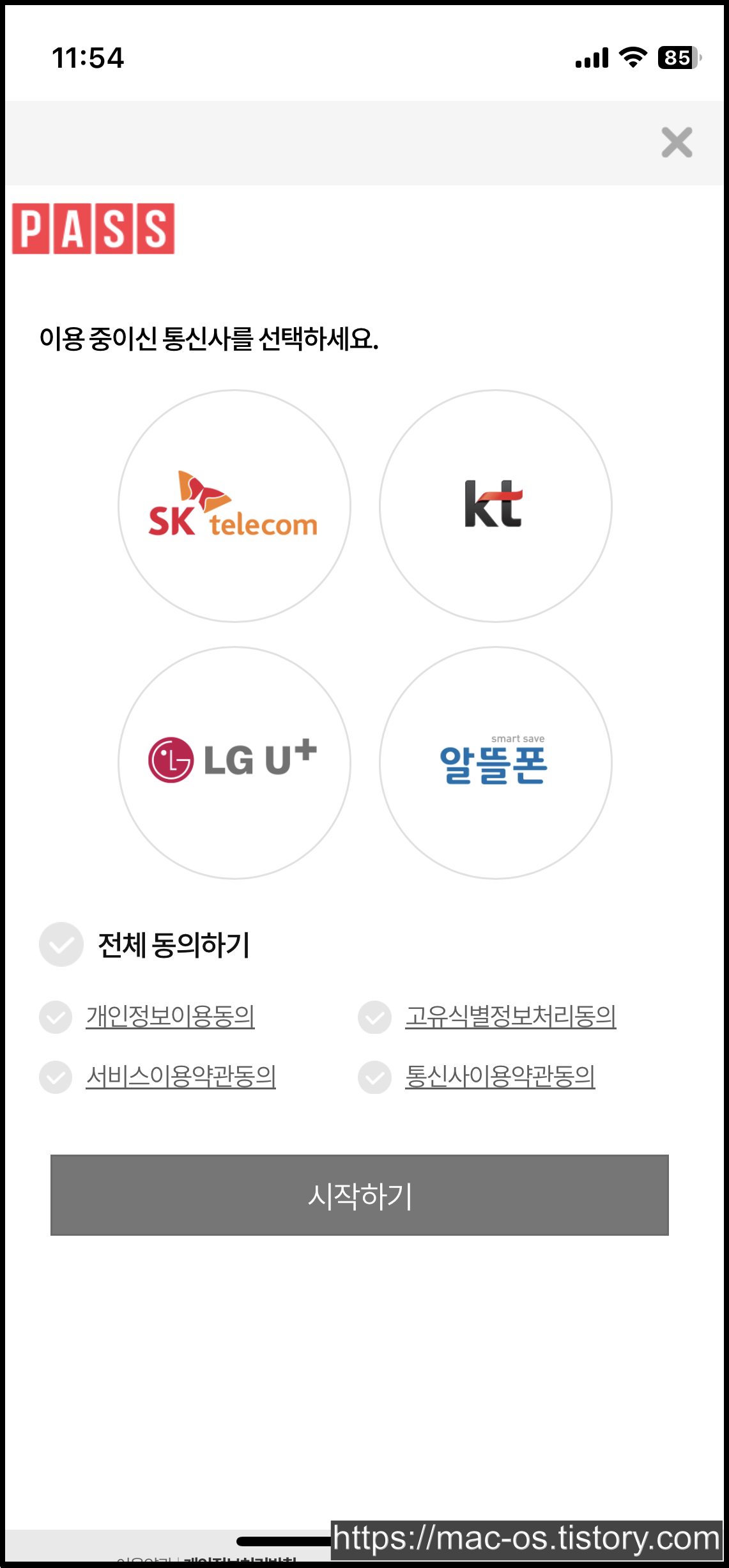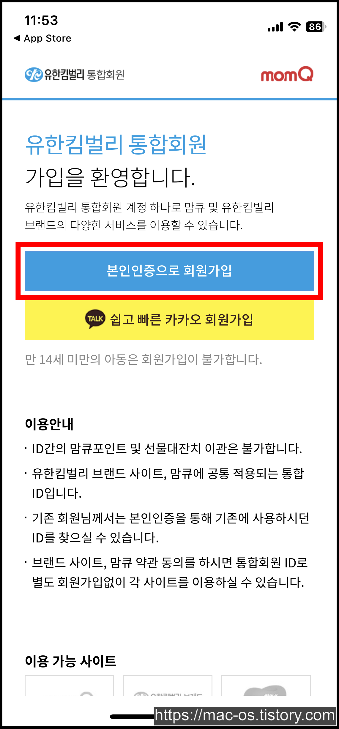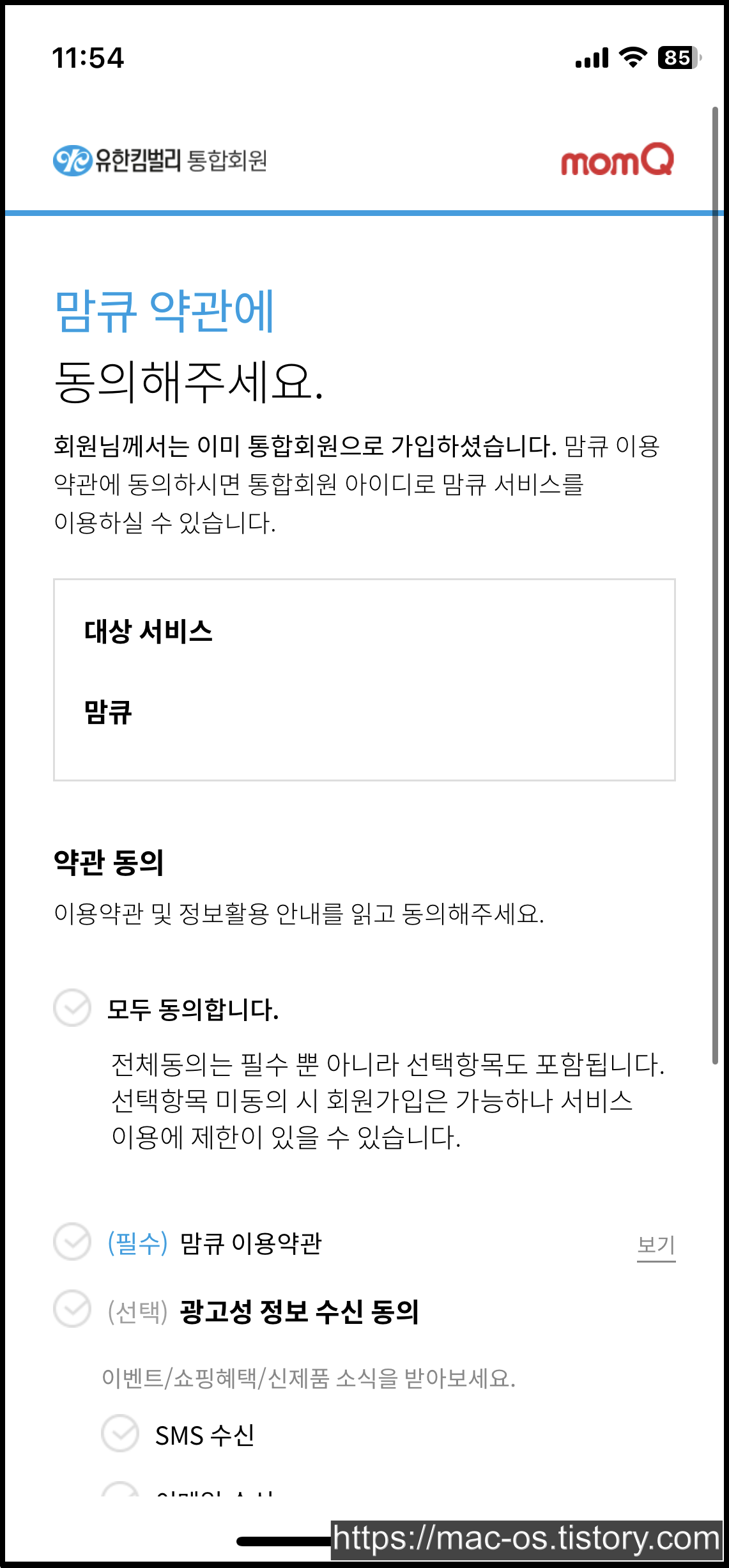 휴대폰 본인인증 후 맘큐 약관에 동의한다.