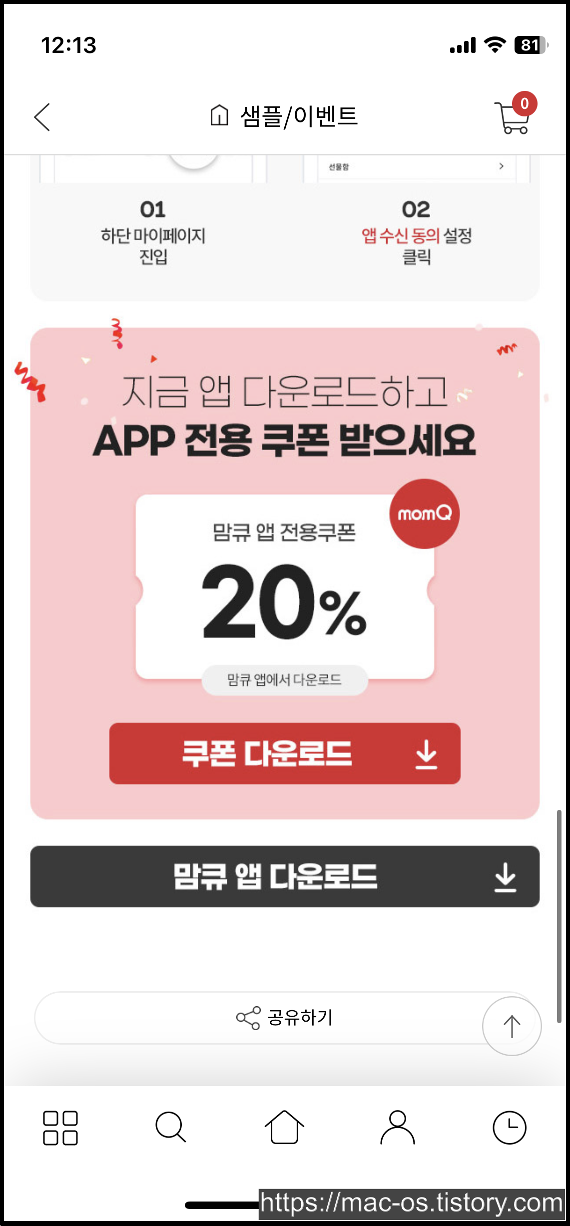 맘큐 추천인 아이디 : ao887 (복사 가능)