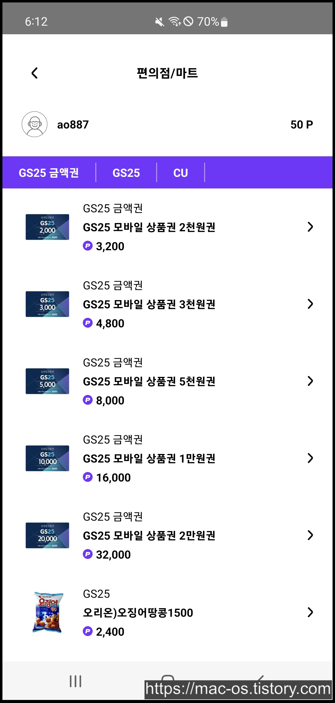 스토어 비율은 1:1.6 정도로, 1만원 상품권을 구매하기 위해선 1만 6천 포인트가 필요하다.