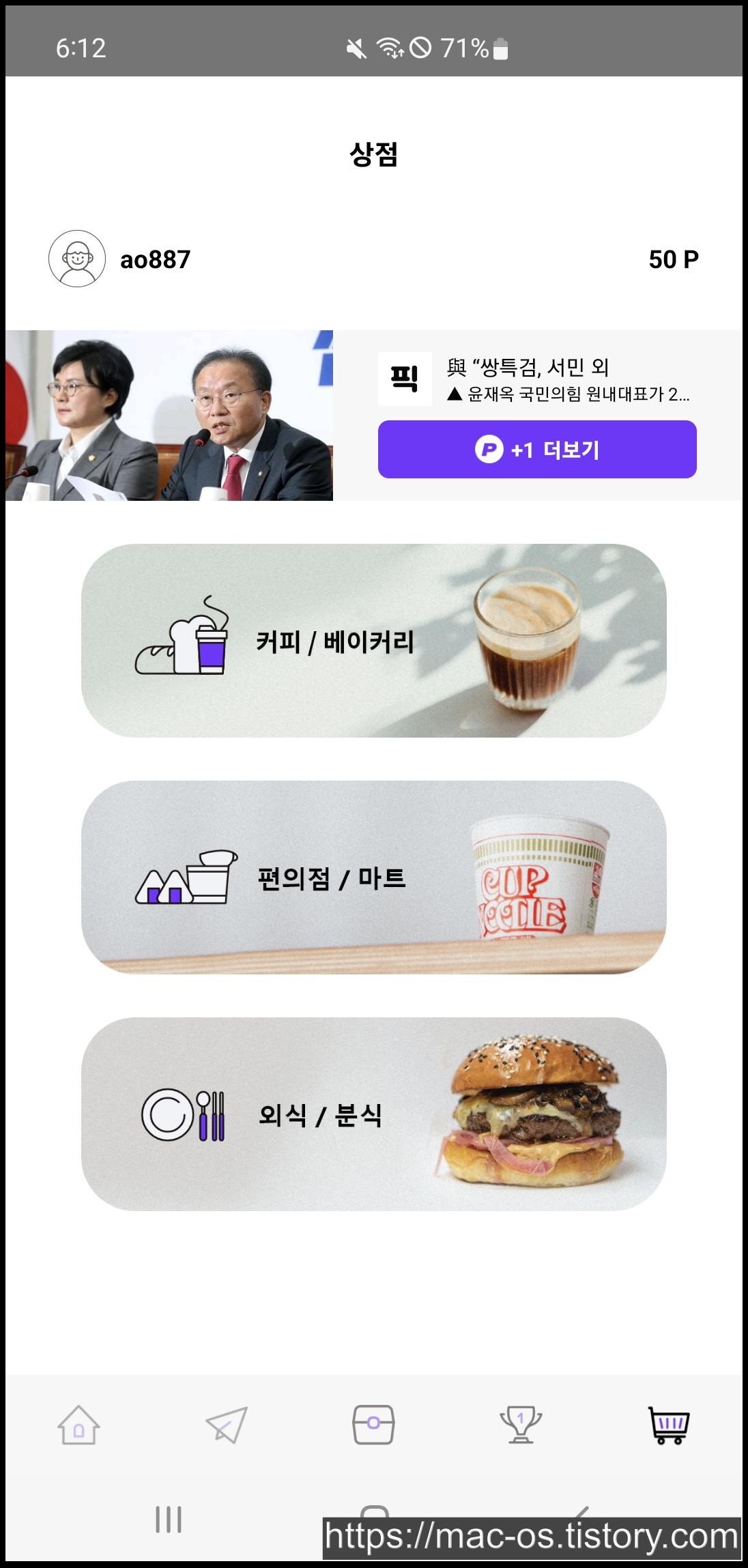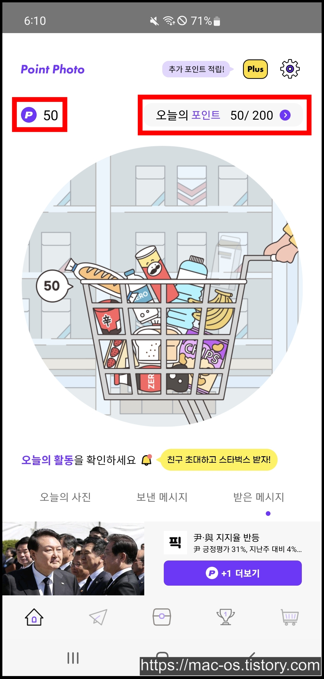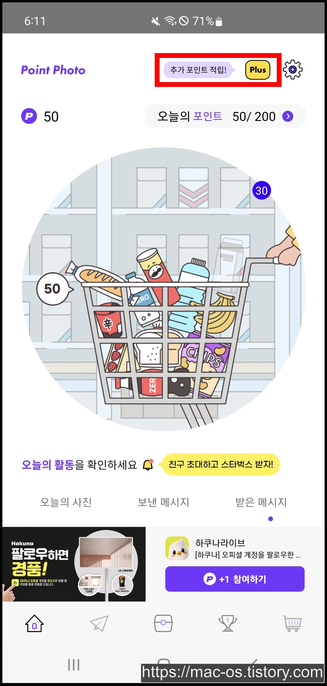 참고로 화면을 캡쳐하더라도 사진을 찍었다고 인정되므로, 사진을 굳이 찍지 않더라도 아무 화면이나 캡쳐하고 카트를 터치하여 포인트를 받을 수 있다.