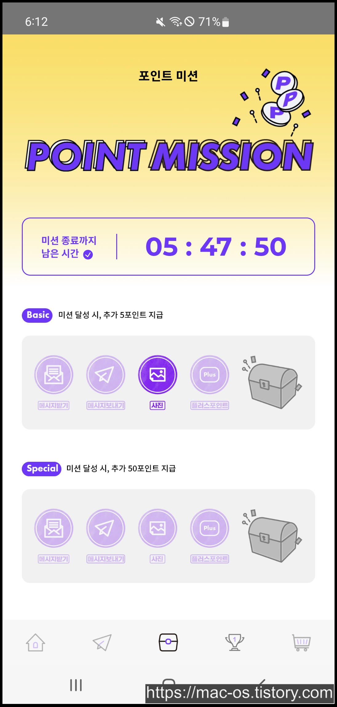 좌측 사진은 포인트포토 포인트 미션이다. Basic 미션과 Special 미션으로 총 2가지의 미션이 있으며, 해당 미션을 완료할 경우 매일 추가 포인트를 받을 수 있다.