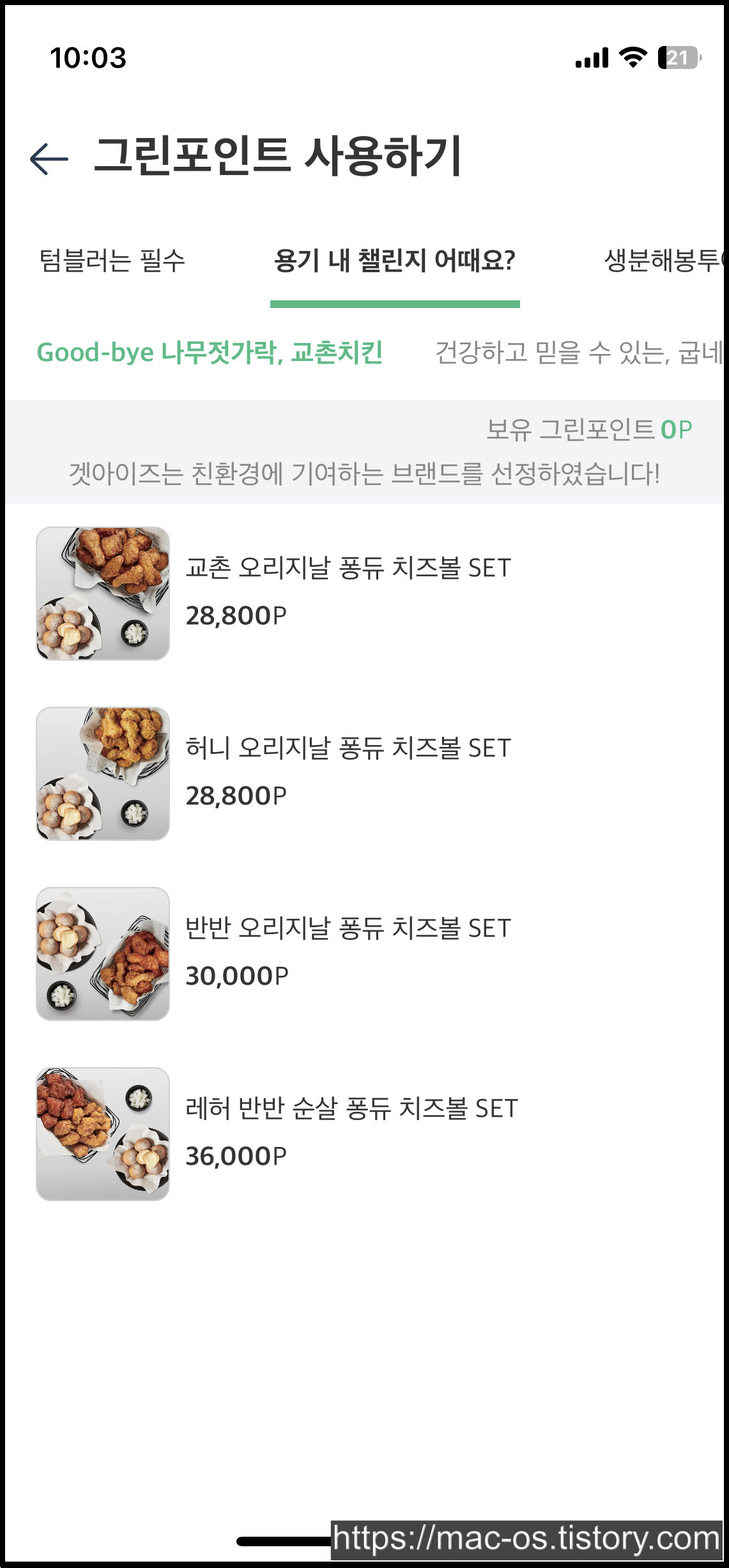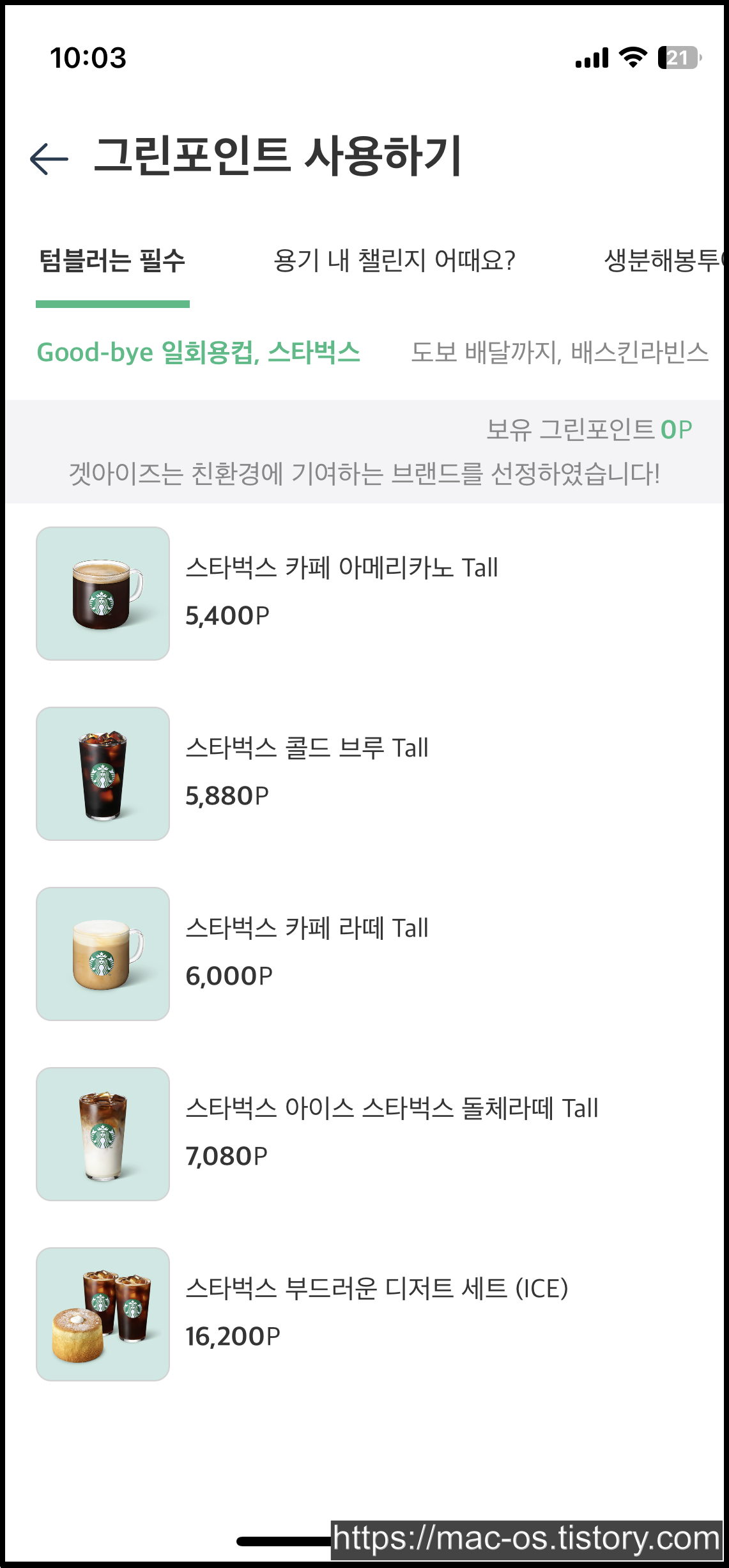 그린포인트 샵에서는 스타벅스, 교촌치킨, 세븐일레븐, GS25, CU, 네이버페이 등 다양한 상품을 판매중이다.