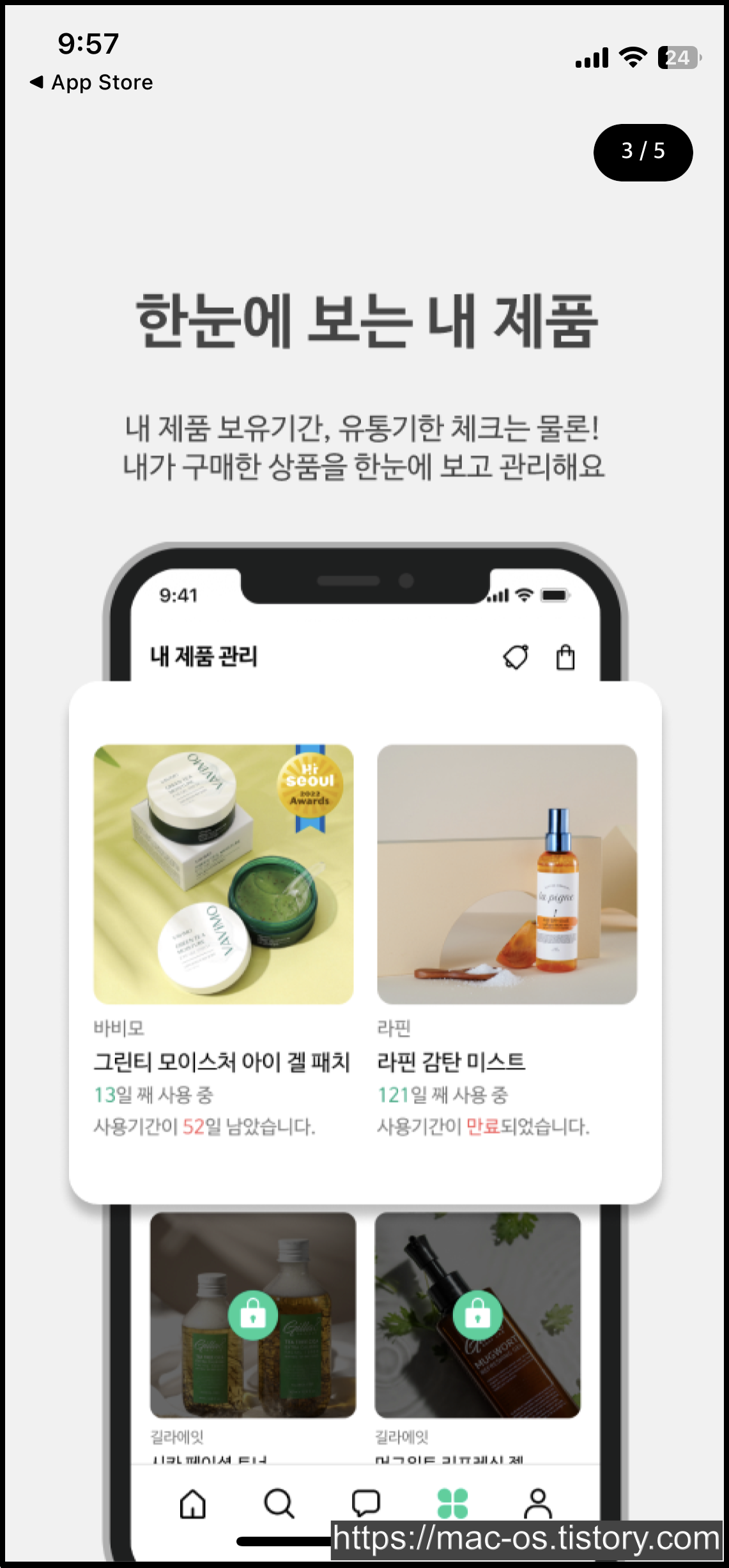 - 겟아이즈에서 내 제품의 보유기간과 유통기한 체크, 구매한 상품들을 한눈에 보고 관리할 수 있다.