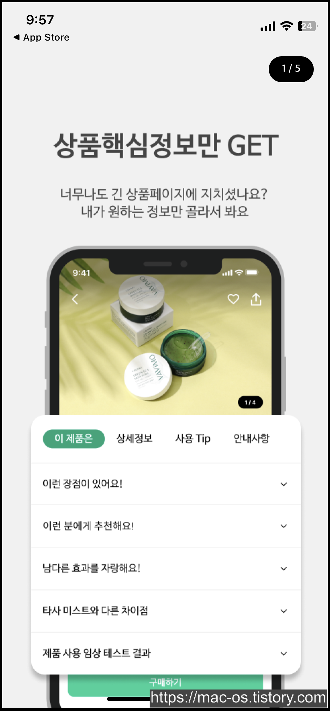 화면을 조금 더 내려보면 '이 제품은' 어떤 장점이 있으며, 어떤 사람에게 추천하며, 얼마나 많은 사람들이 사용하고 있는 상품인지 알려준다.