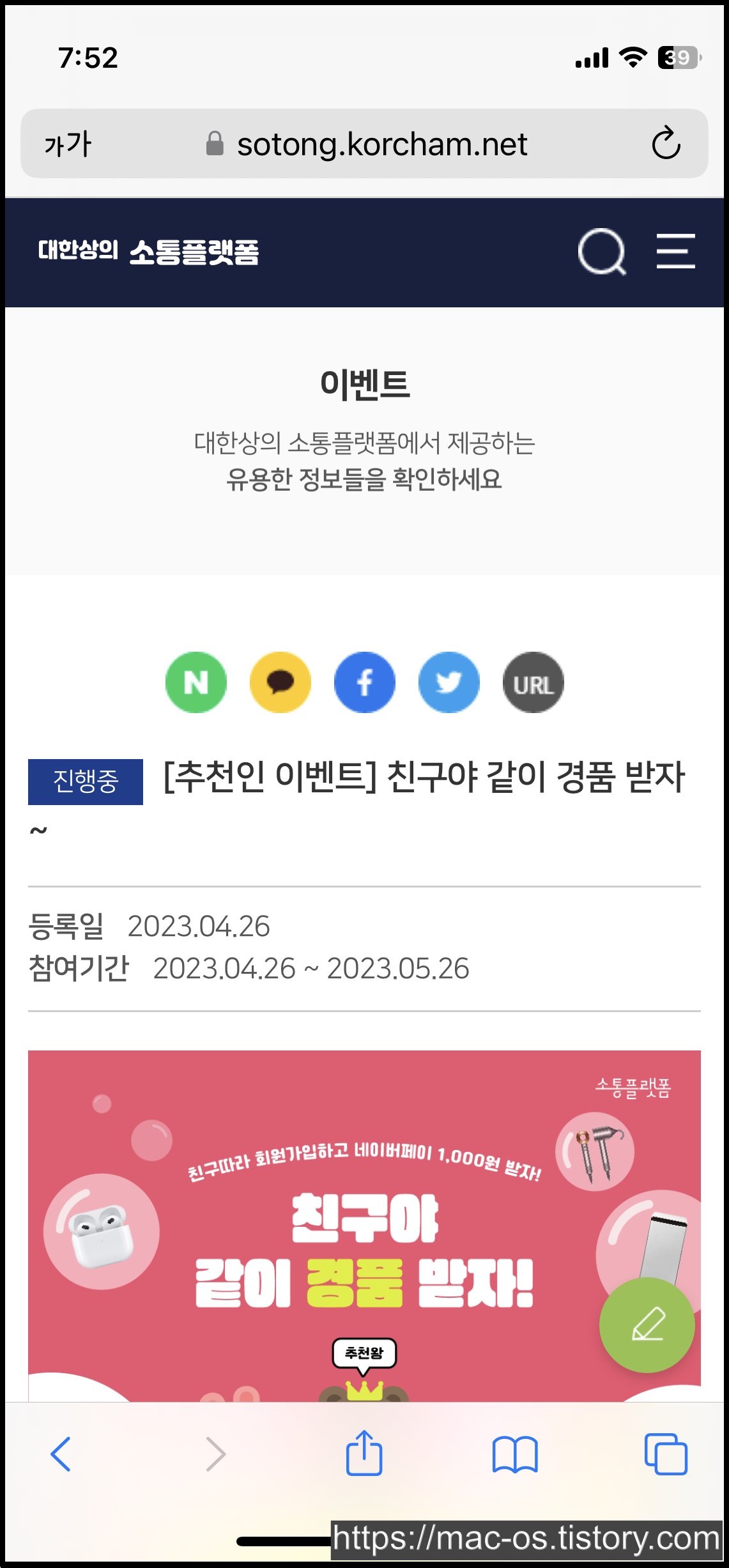 대한상의 소통플랫폼 추천인 이벤트 소개