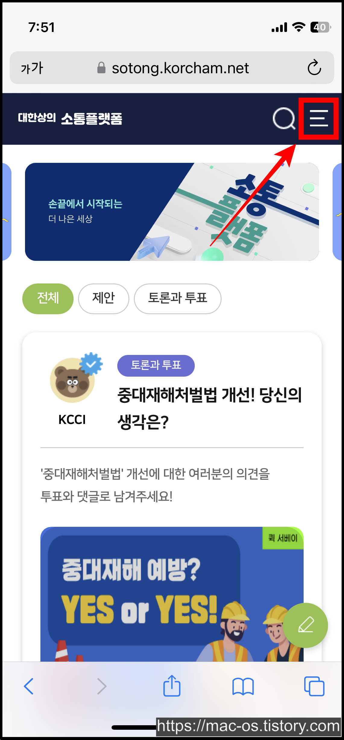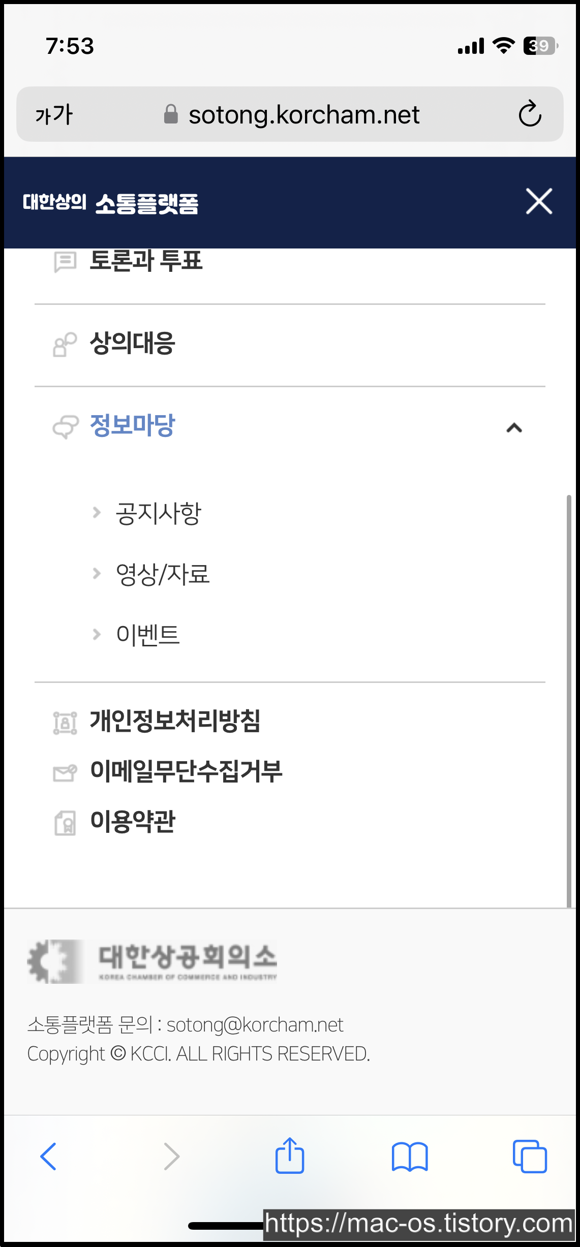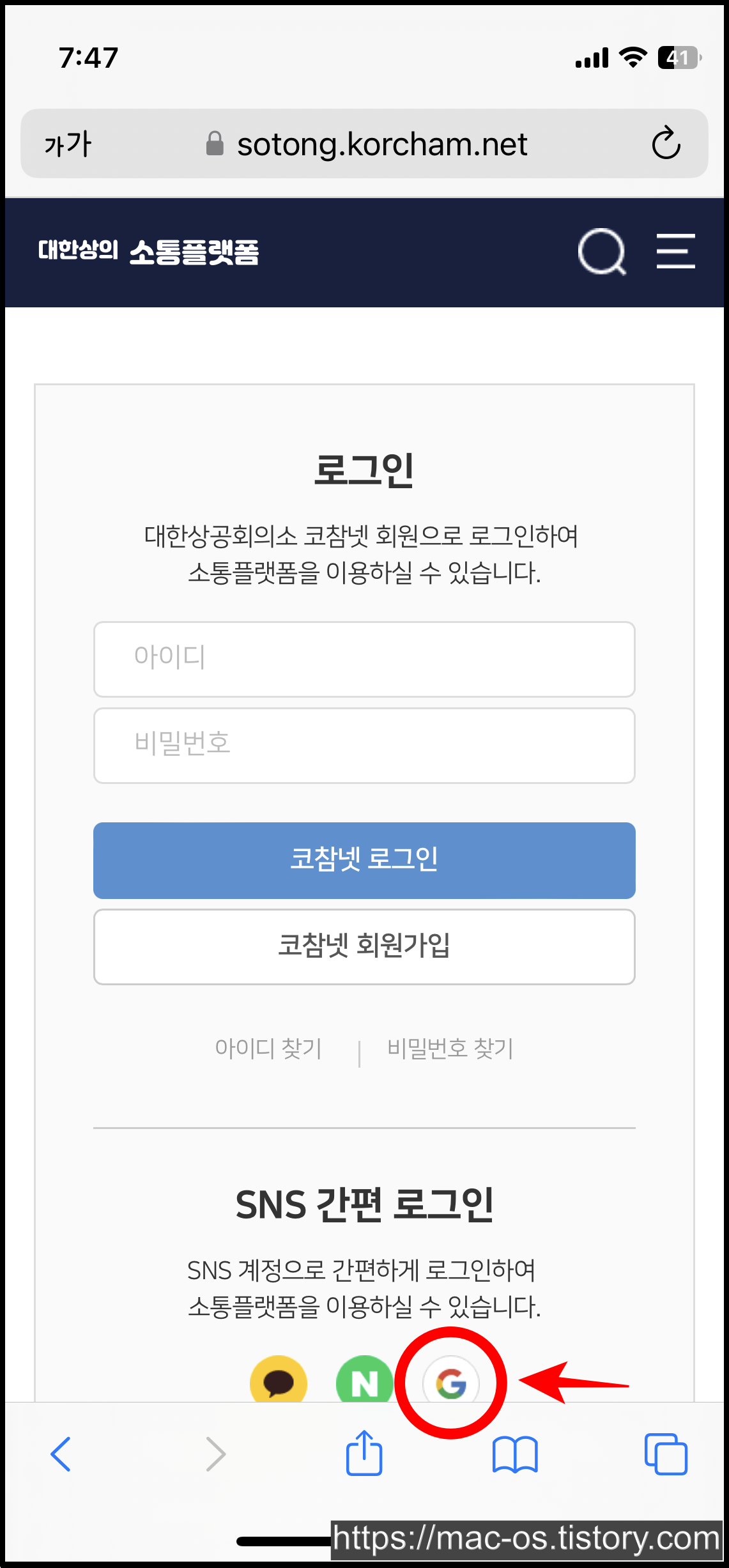 ▶ 대한상의 소통플랫폼 회원가입 주소