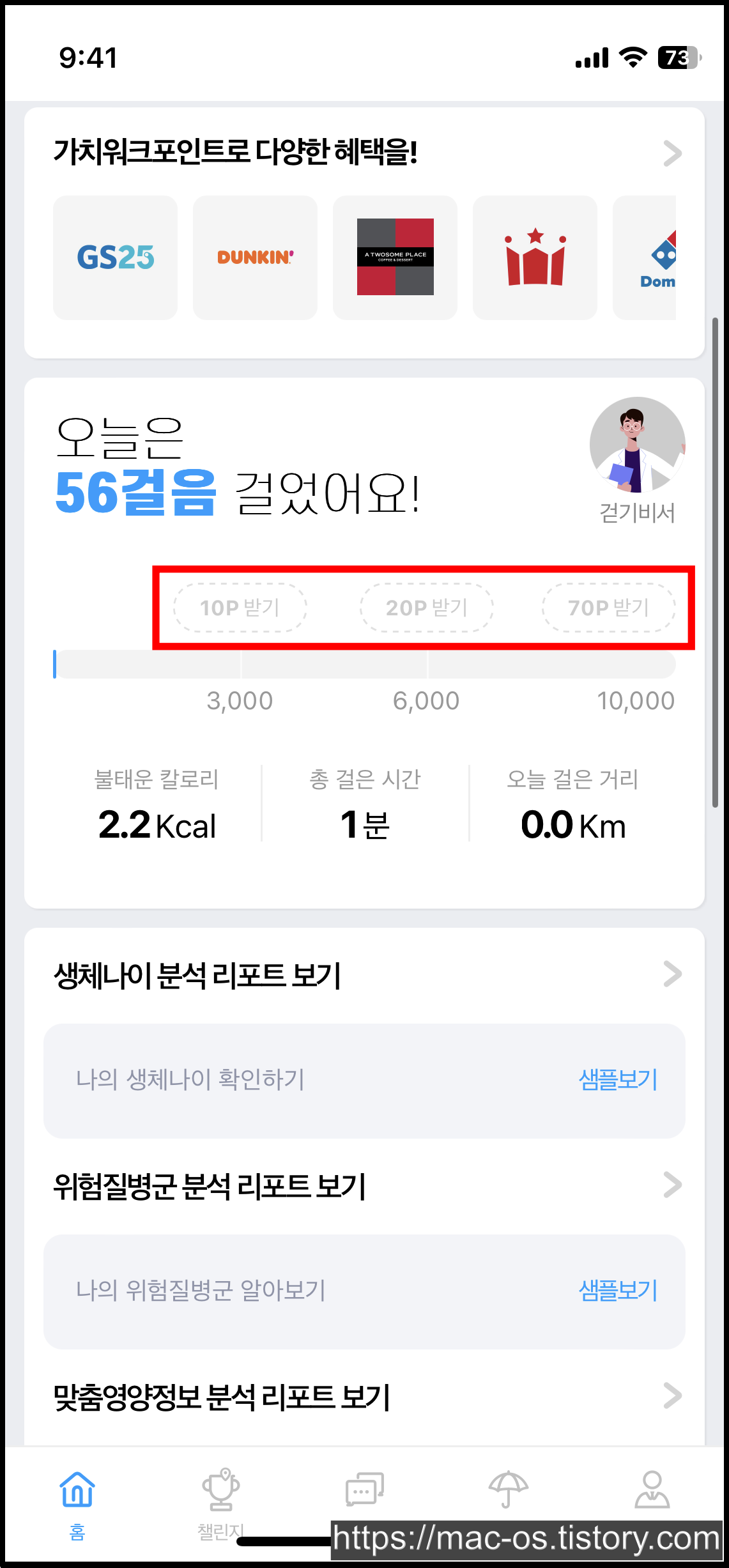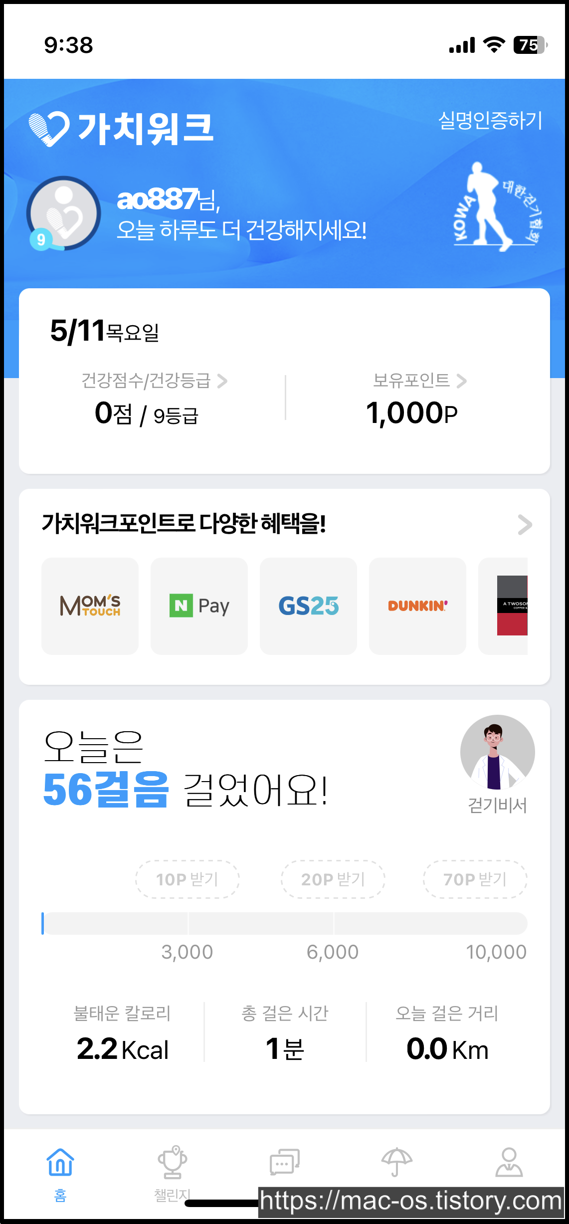 참고로 가치워크에서 매일 1만 걸음을 걸으면 100포인트를 적립받을 수 있음