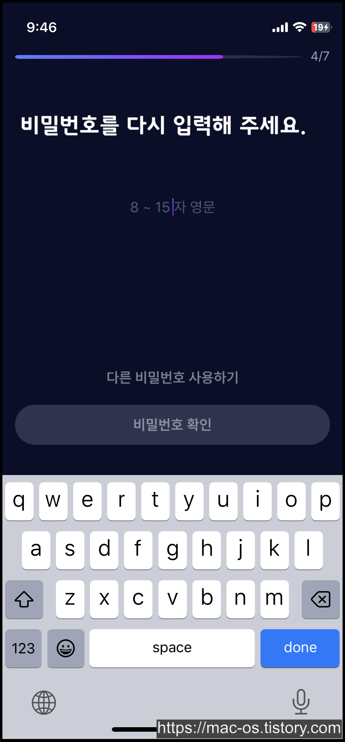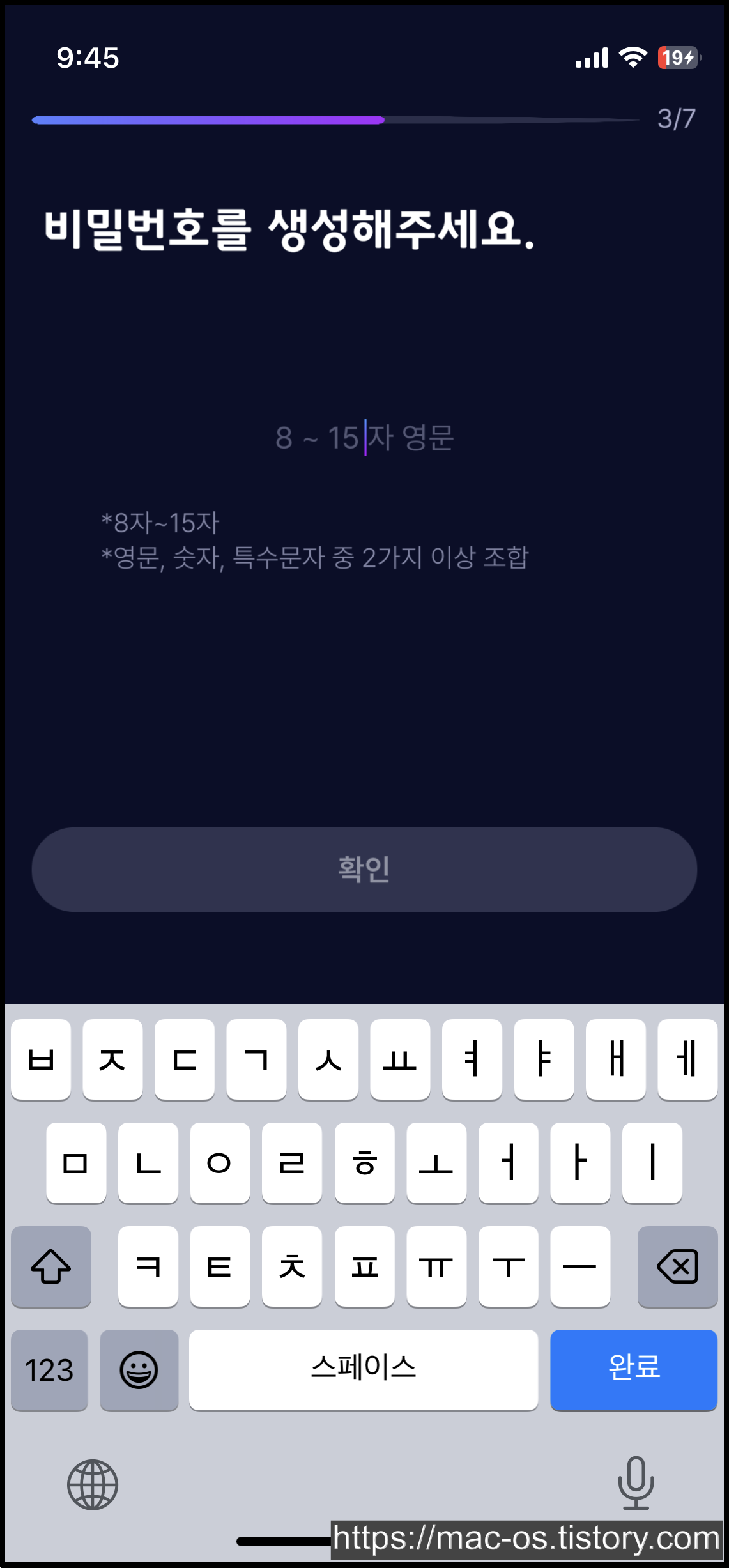 인증번호 6자리 입력 후 비밀번호 생성
