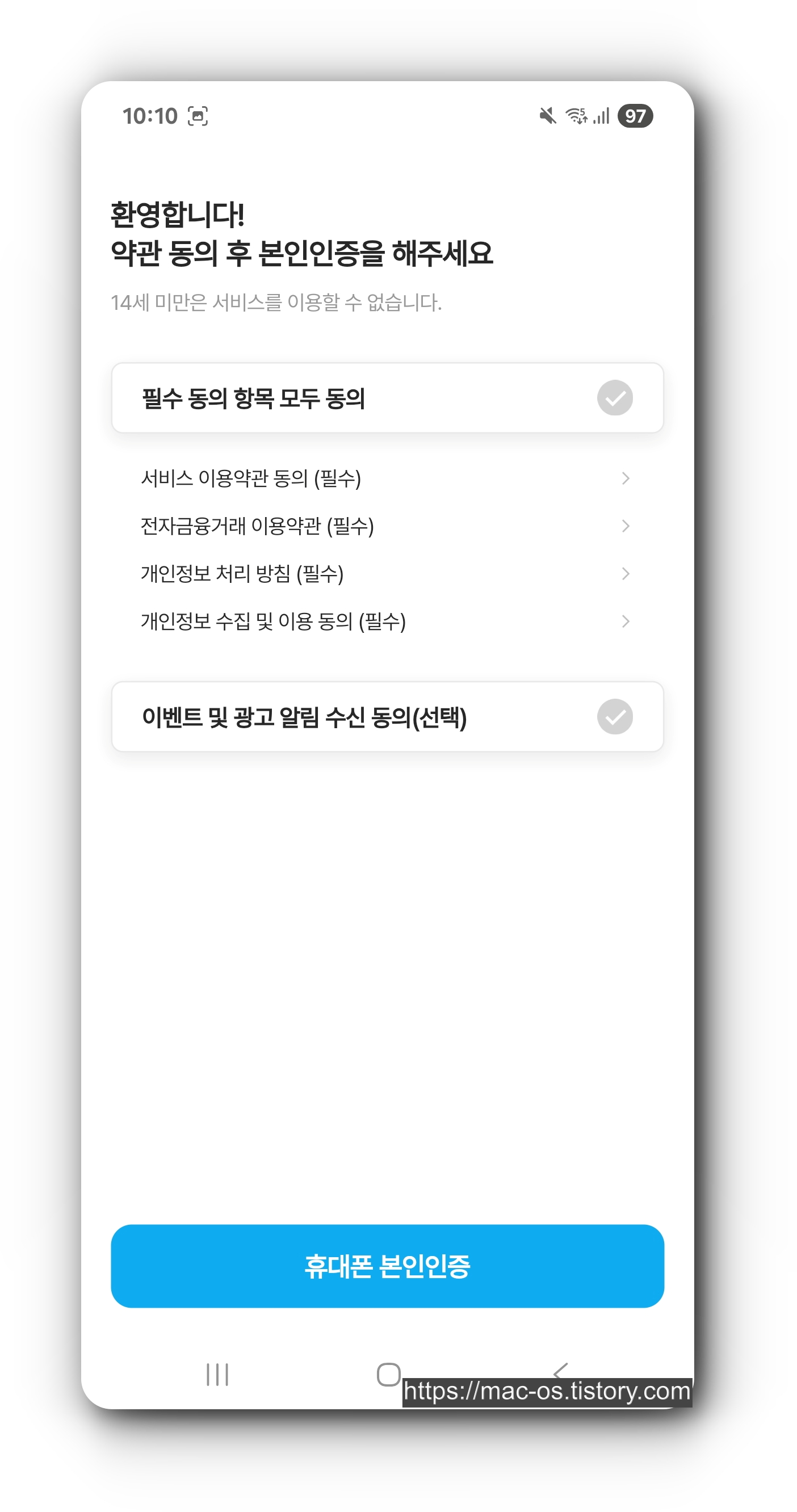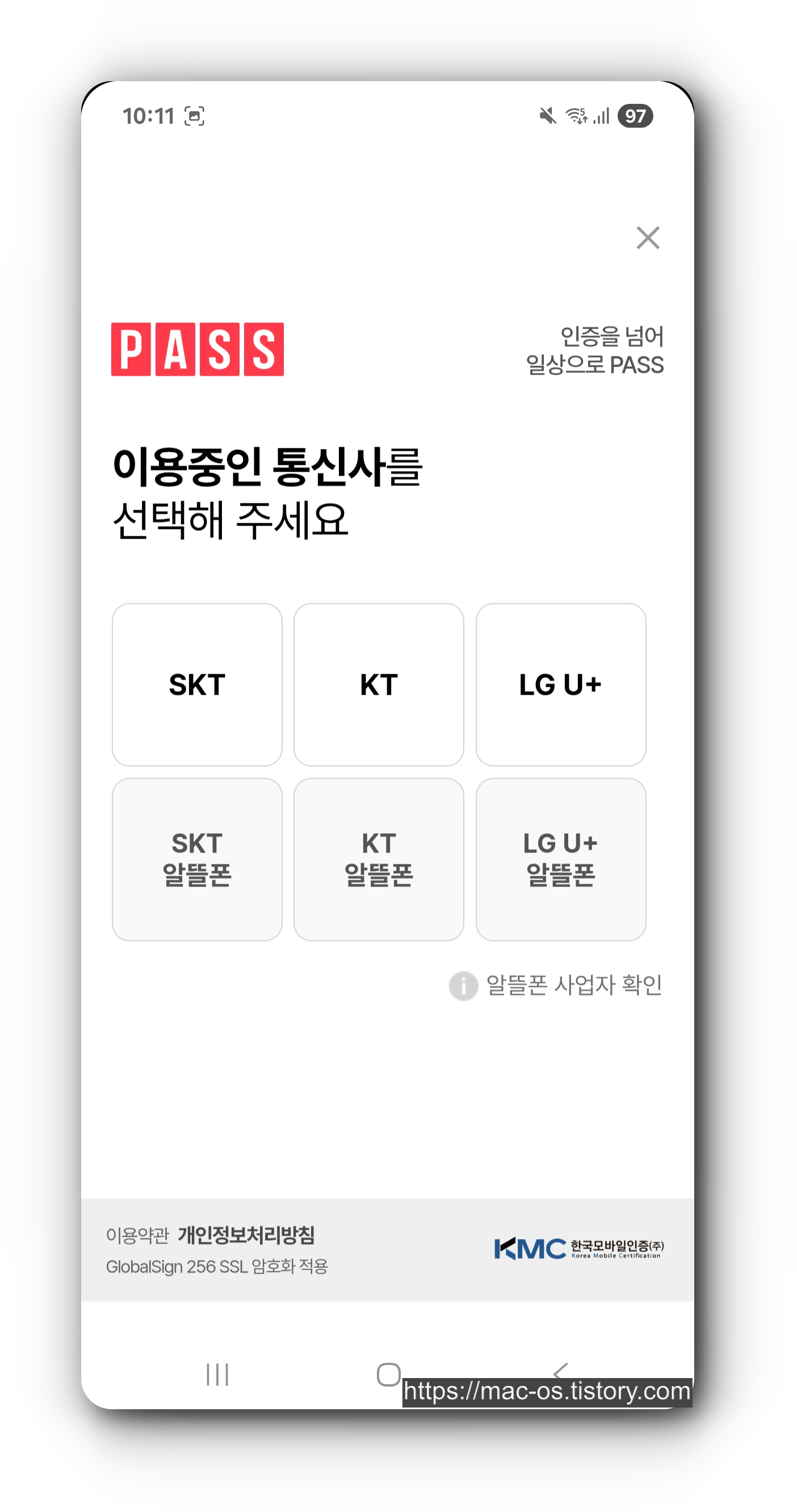 팔라고 약관동의 후 PASS 본인인증을 완료한다.